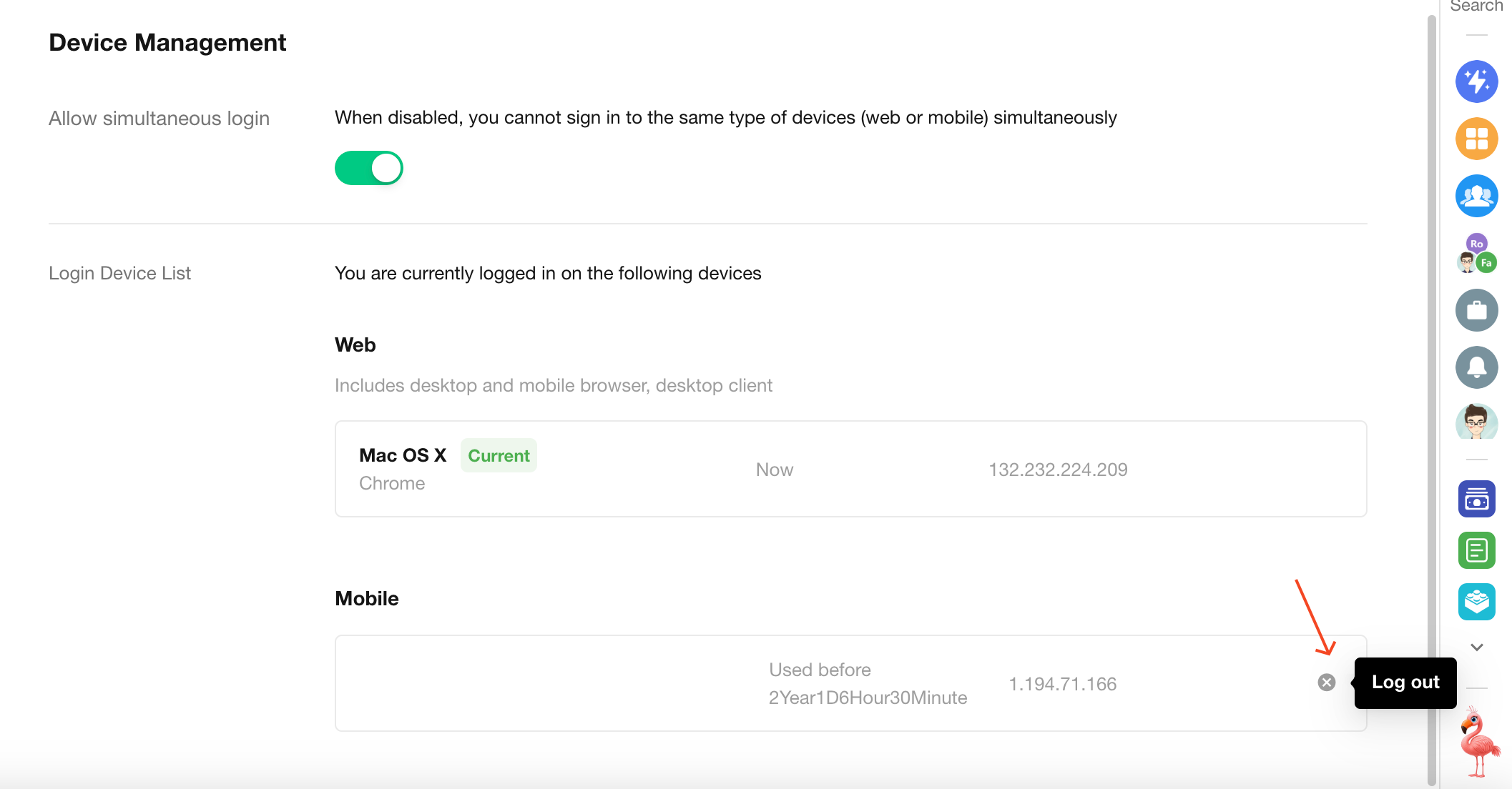 Logging in on a new device will automatically log you out from the same type of device elsewhere.