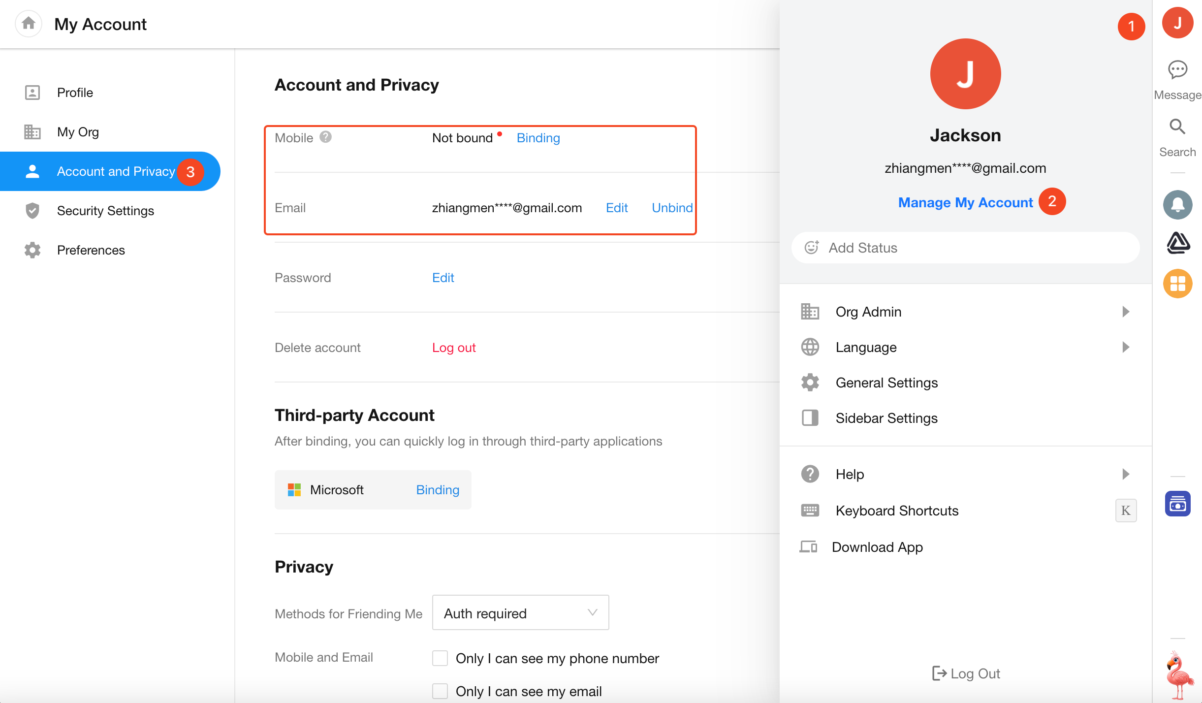 2. Bind or Unbind Mobile Number / Email