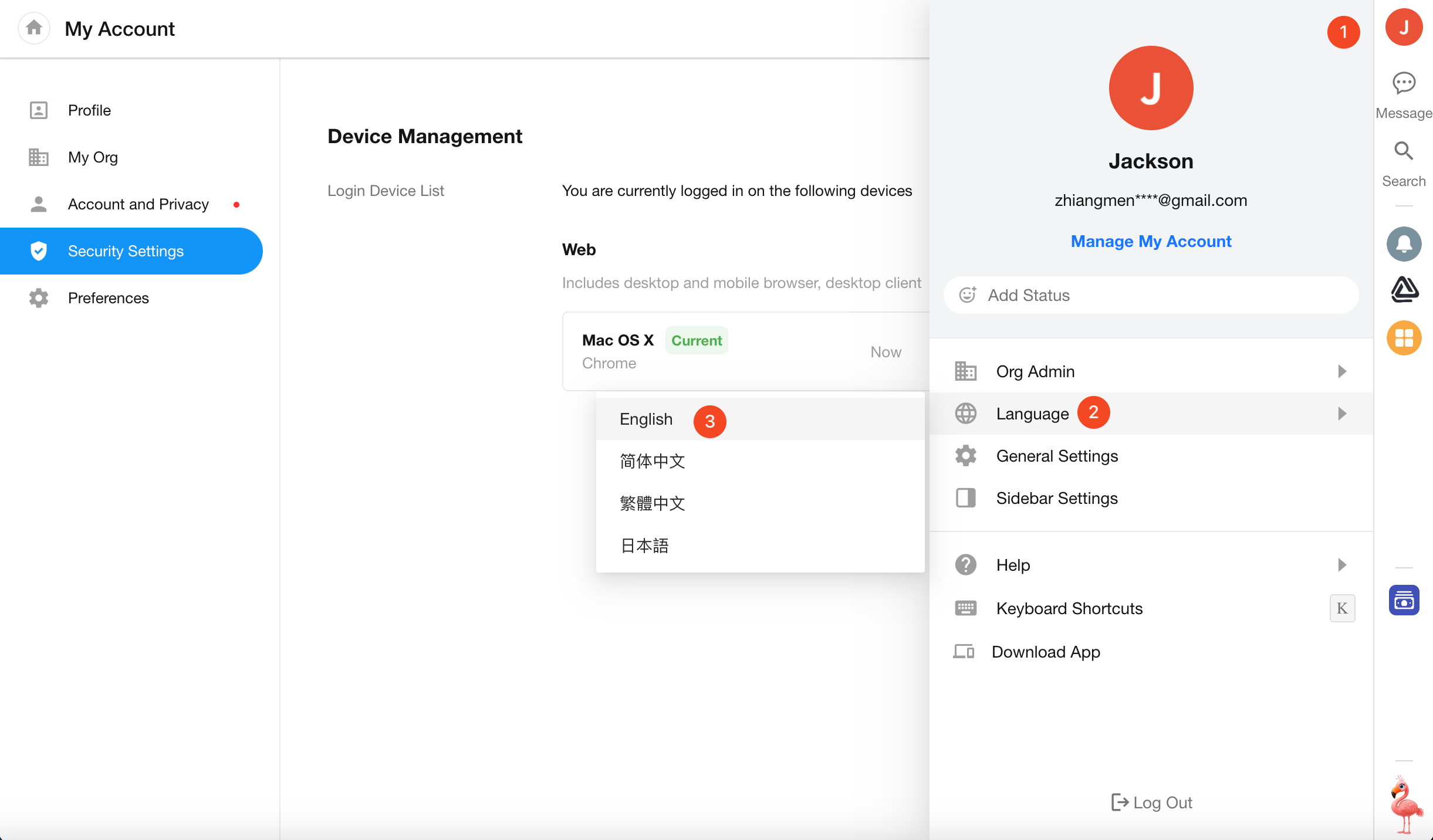 Click your profile avatar, then select Manage My Account to open your personal account settings page, where you can update profile info, verify your identity, enhance security, and configure usage preferences.