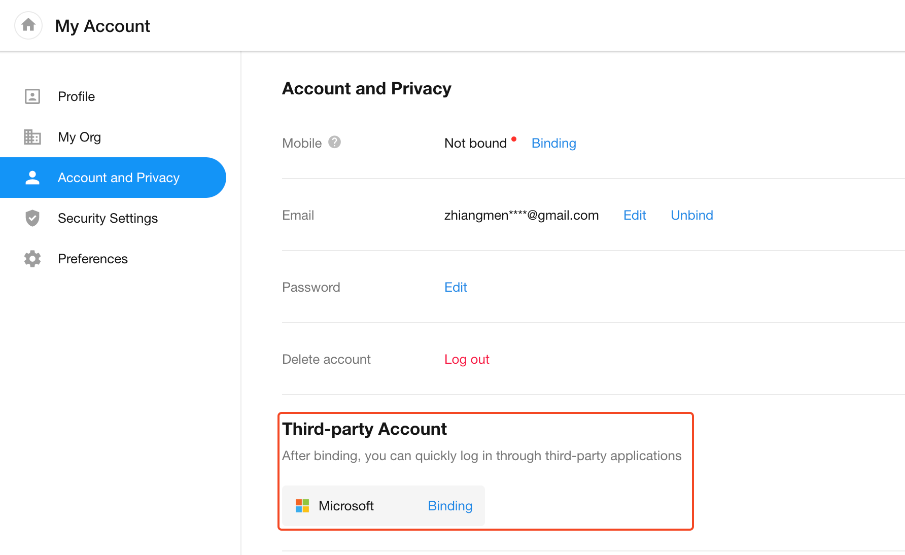 You can bind third-party accounts for quick login: