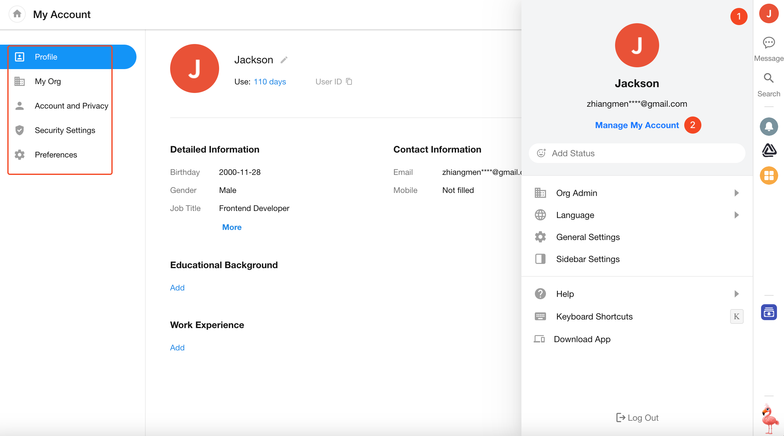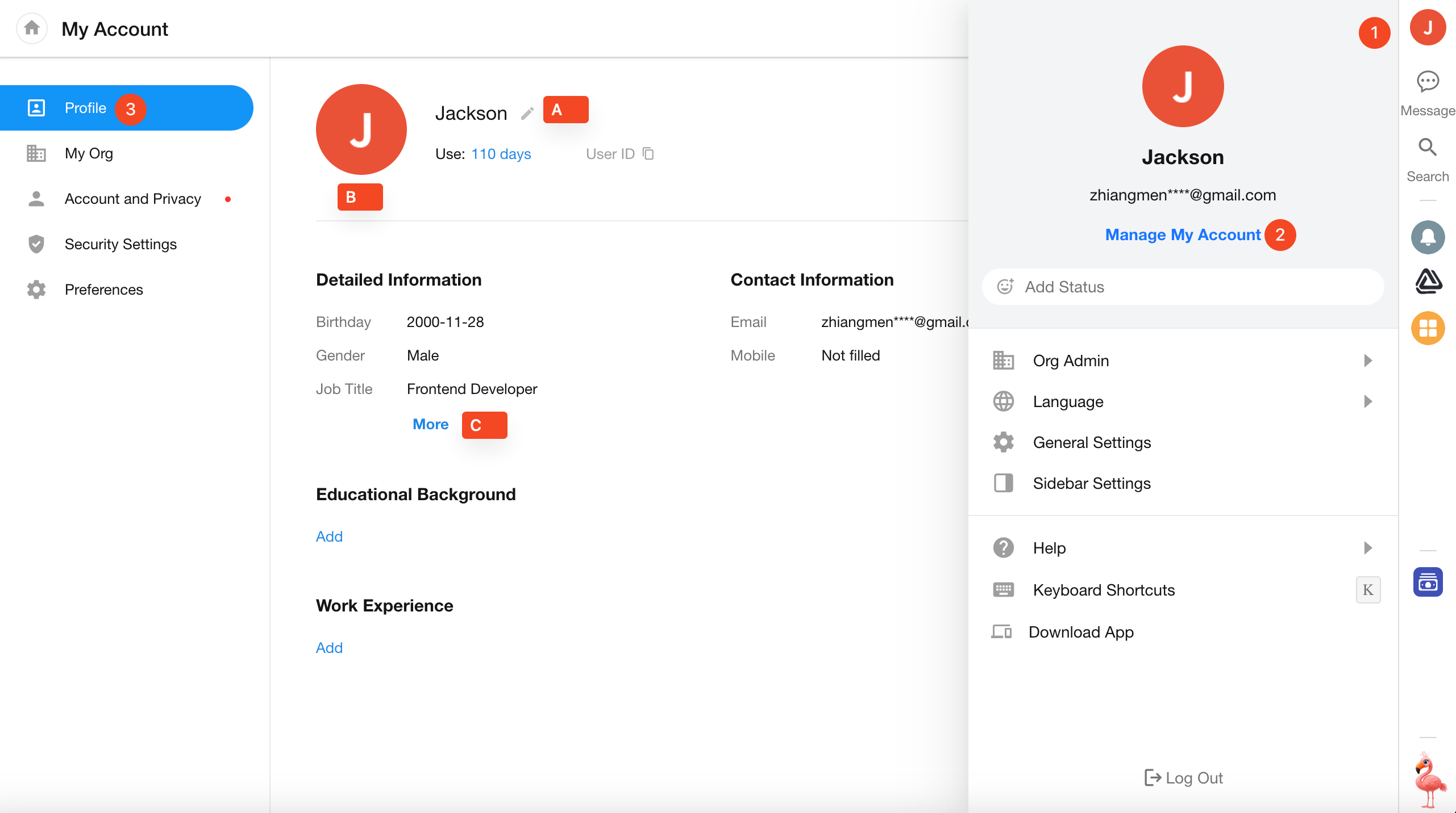 Go to [Manage My Account] > [Profile] to update your name, avatar, and other personal details.