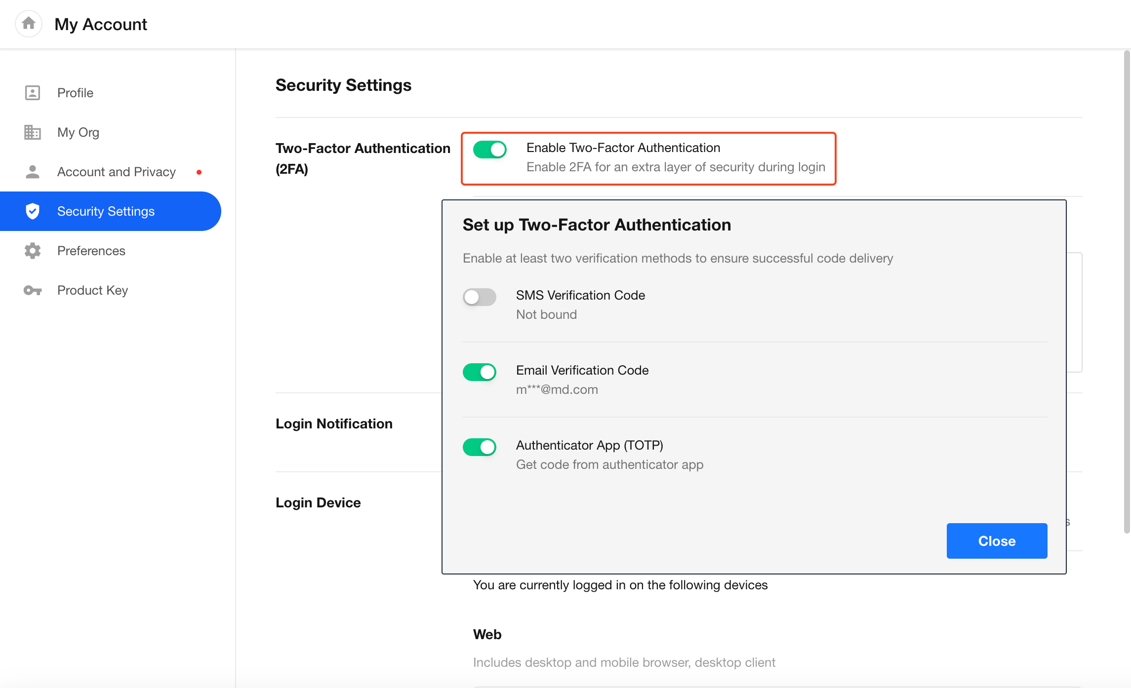 Two-factor authentication adds an extra layer of security to your account. After entering your username and password, you'll also be required to input a verification code—making unauthorized access significantly harder.