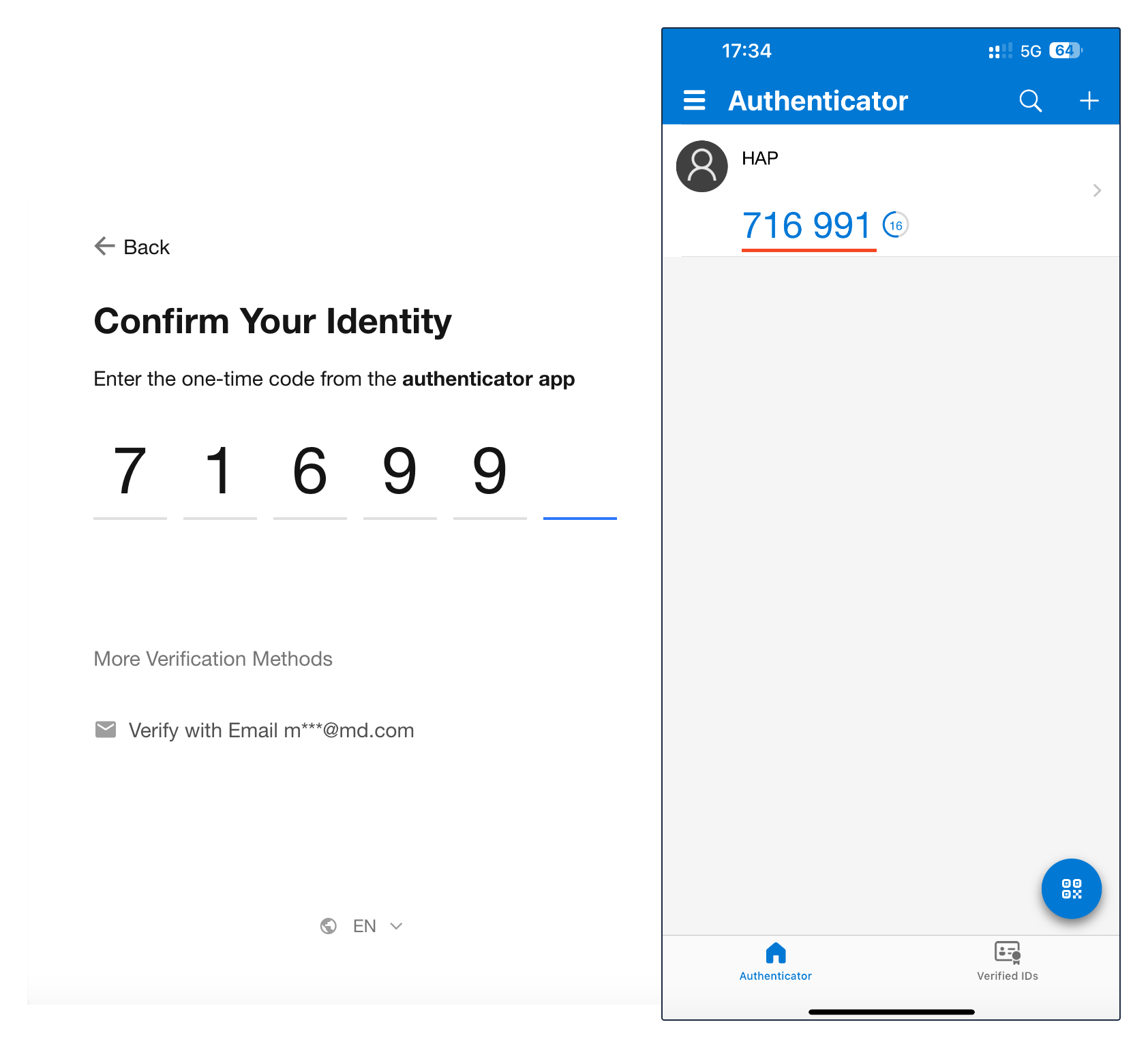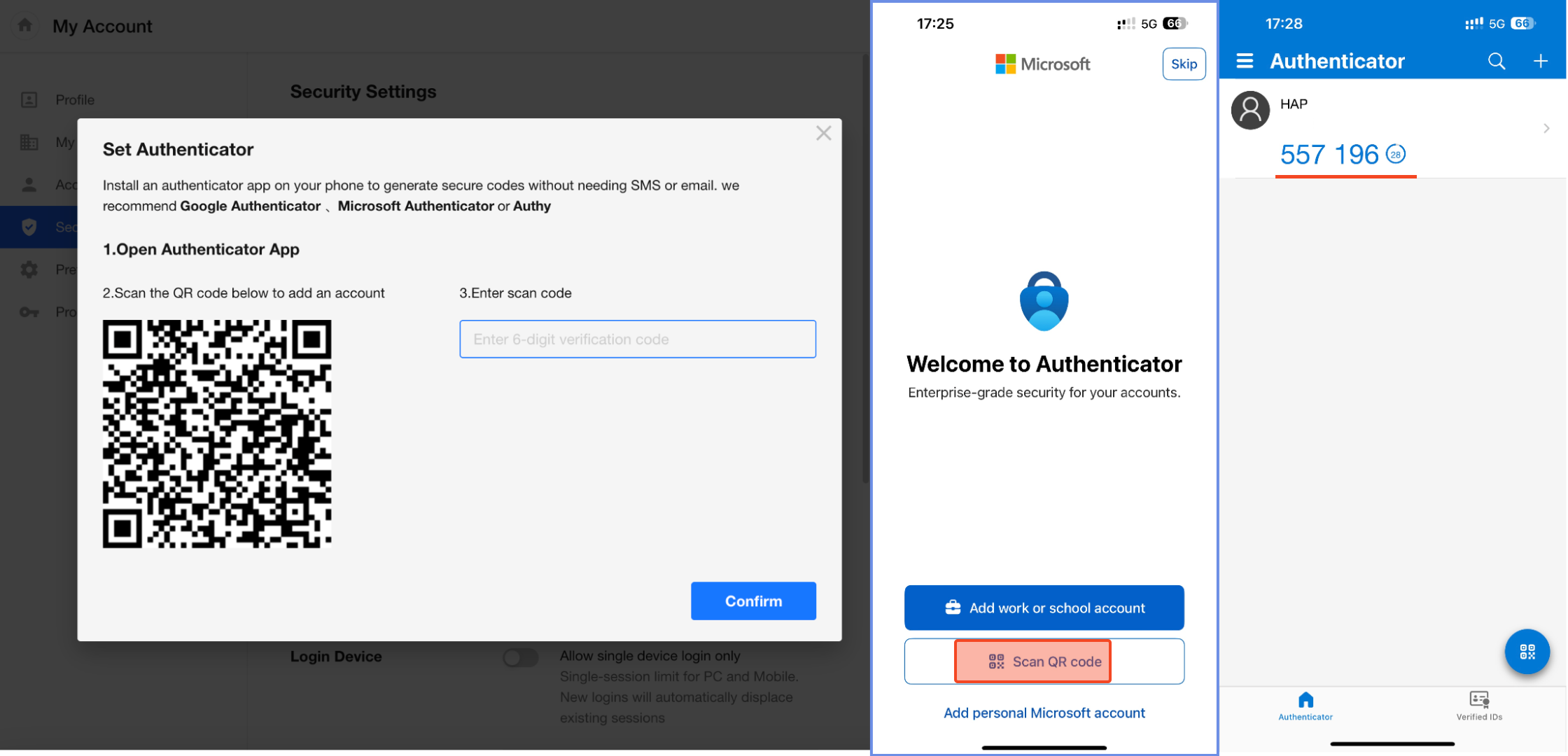Type the 6-digit code shown in the app into HAP and click Confirm to complete the setup.