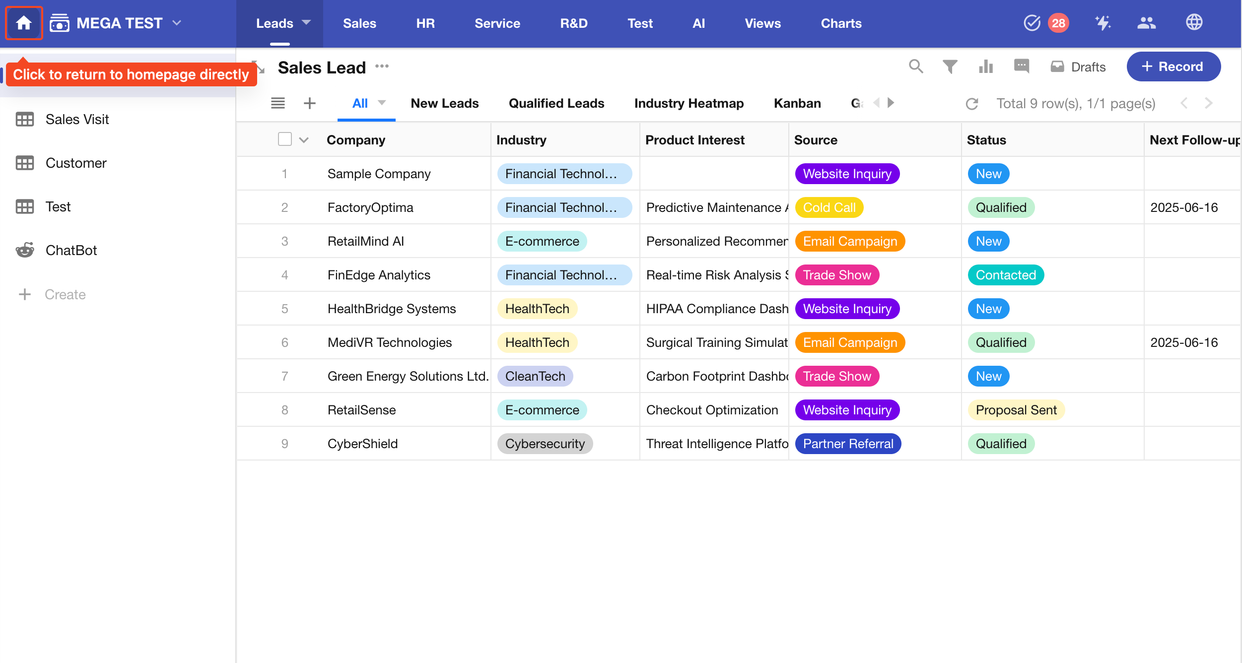 Click the top-left icon directly to return to the platform homepage.