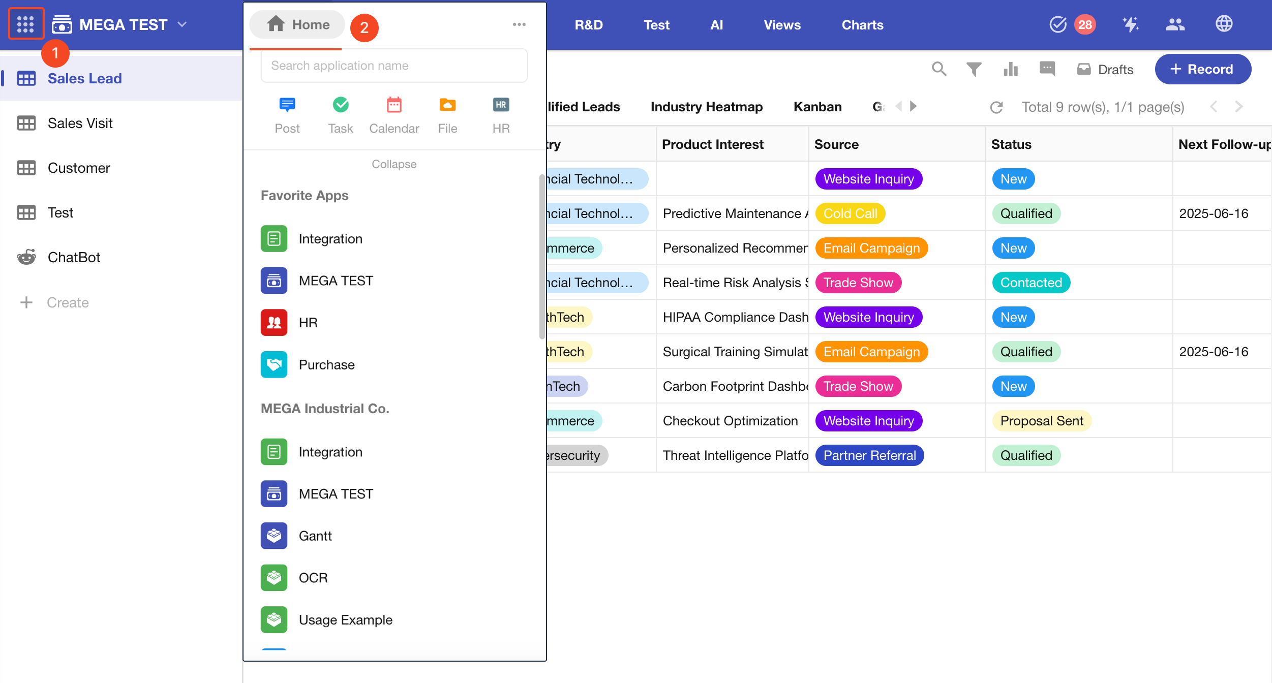 When inside an app, you can return to the homepage (workspace) using the top-left corner button.