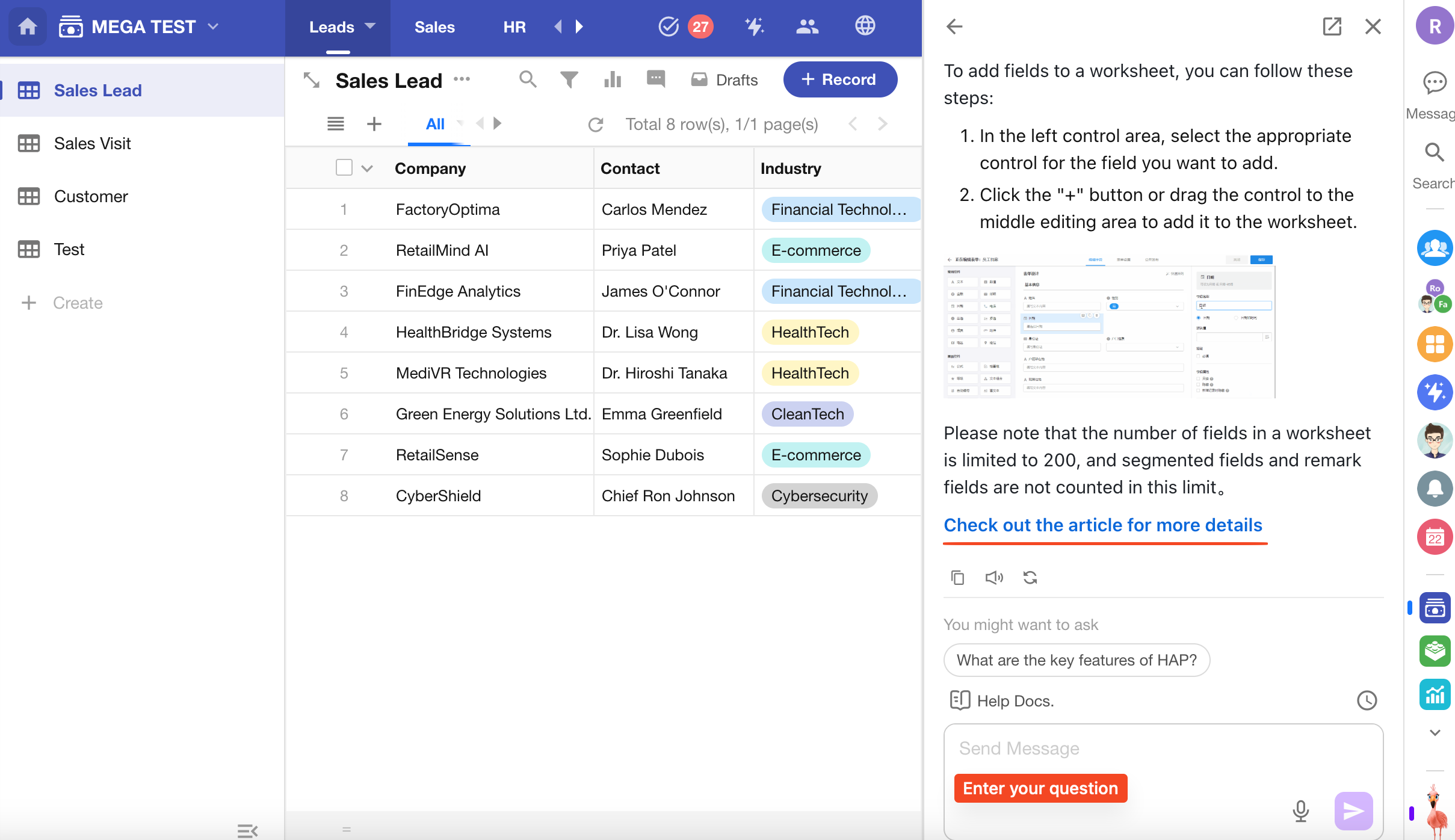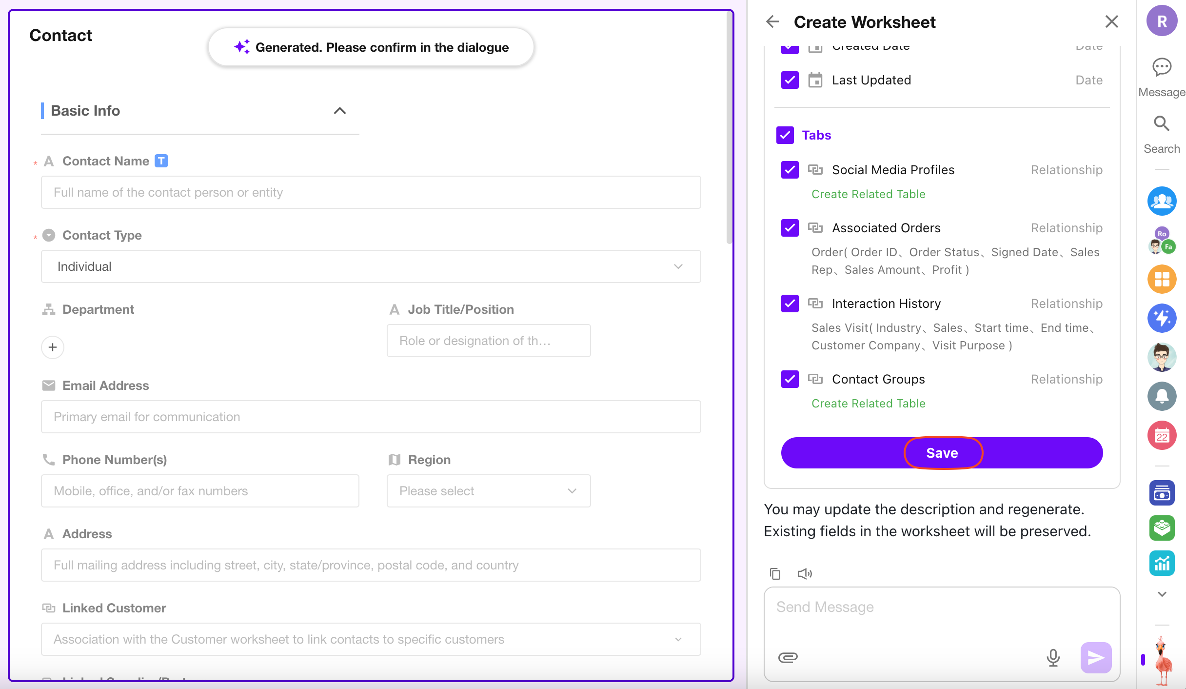 After confirmation, Mingo will automatically create the fields and configure their properties. Click the save button to complete worksheet creation.