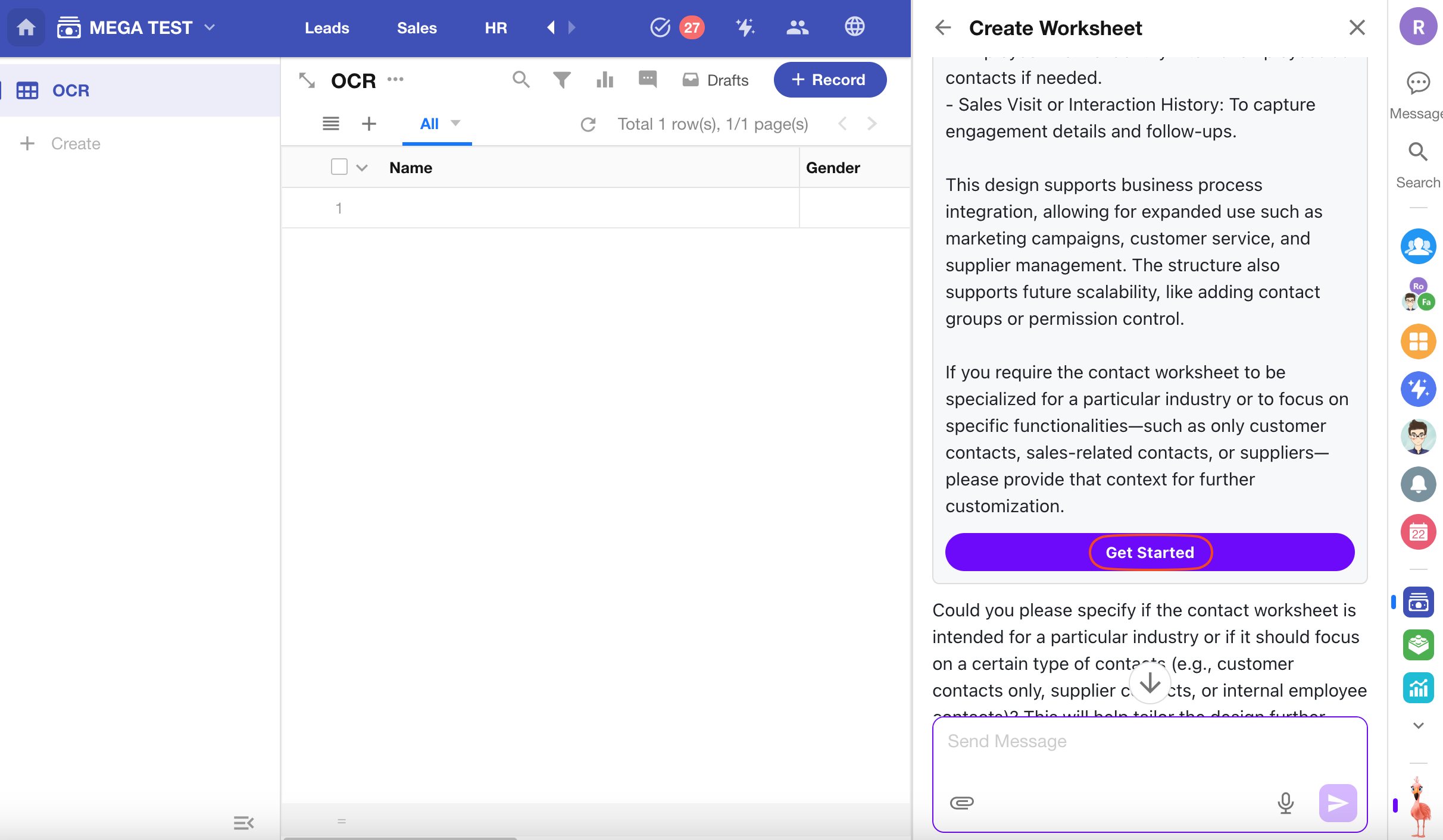 Alternatively, press M on any worksheet page to open Mingo, then select Create Record.