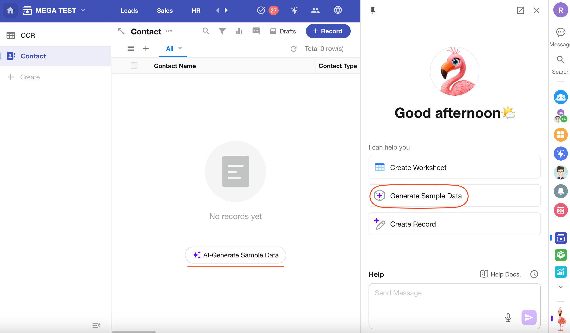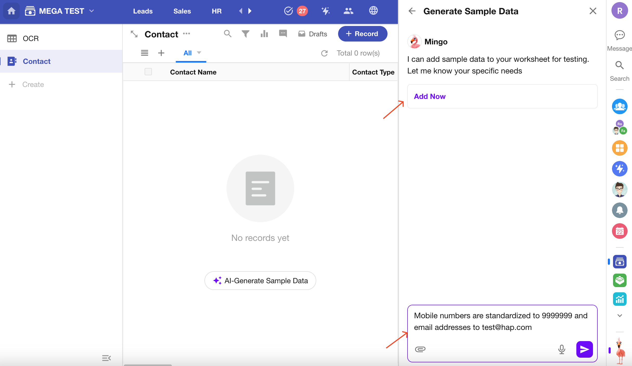 Mingo can generate high-quality sample data for worksheets to support testing and demonstration purposes.