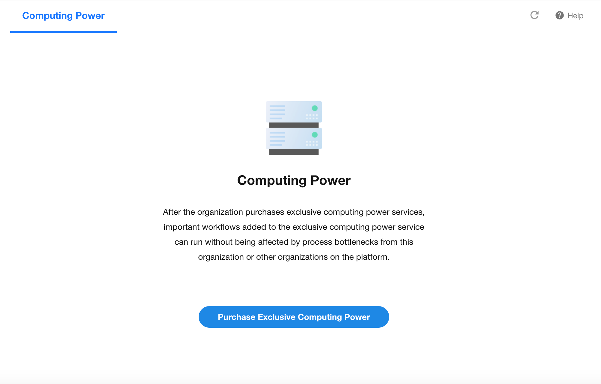 Exclusive Computing Power refers to the exclusive resource service purchased by the organization on the platform that allows workflows to run independently. After purchasing exclusive computing power, you can add important workflows from applications to run on the exclusive computing power, ensuring that they are not impacted by workflows from your organization or other organizations on the platform.