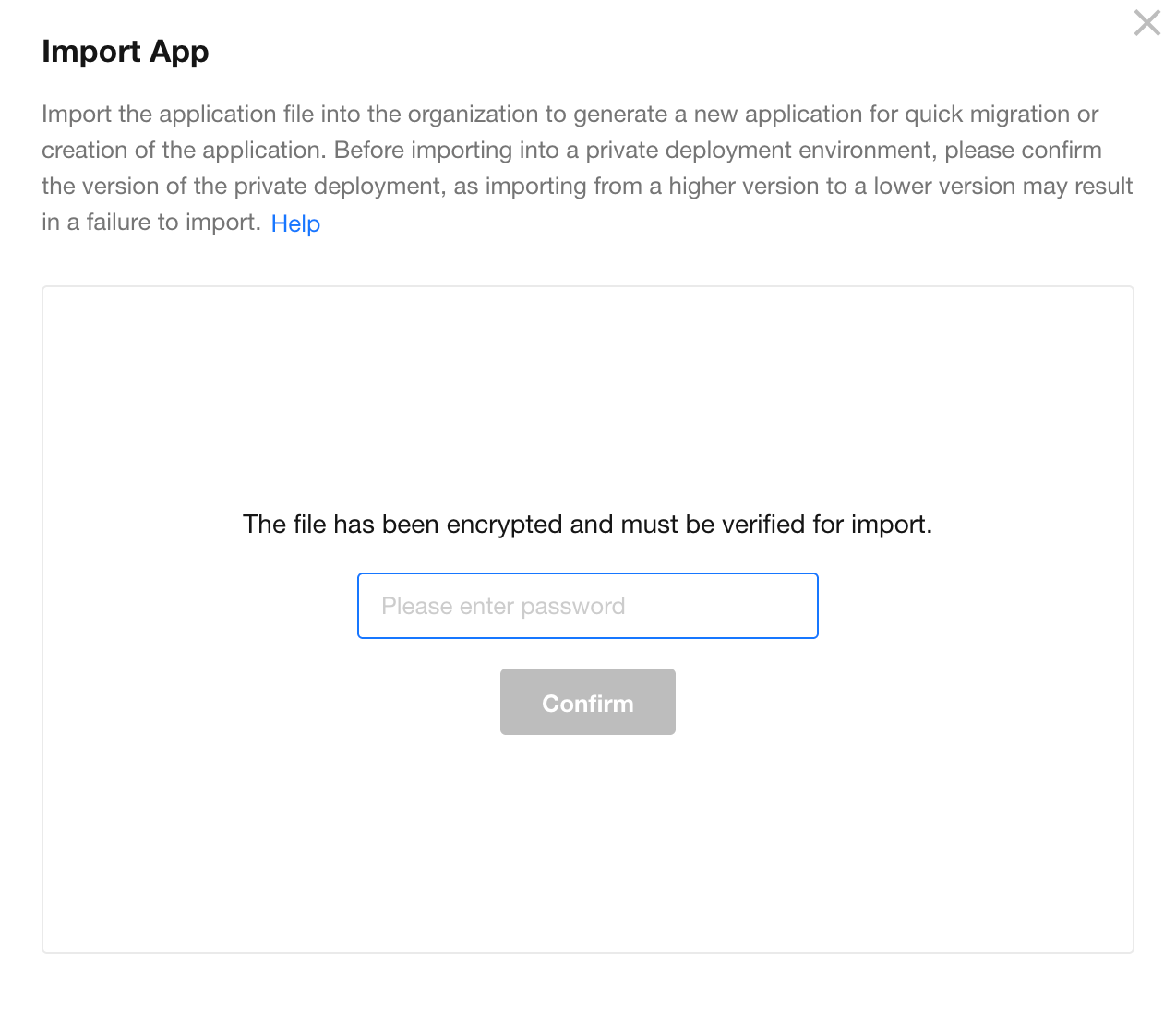 You can set a password for the exported app file. The password must be entered during import for verification.