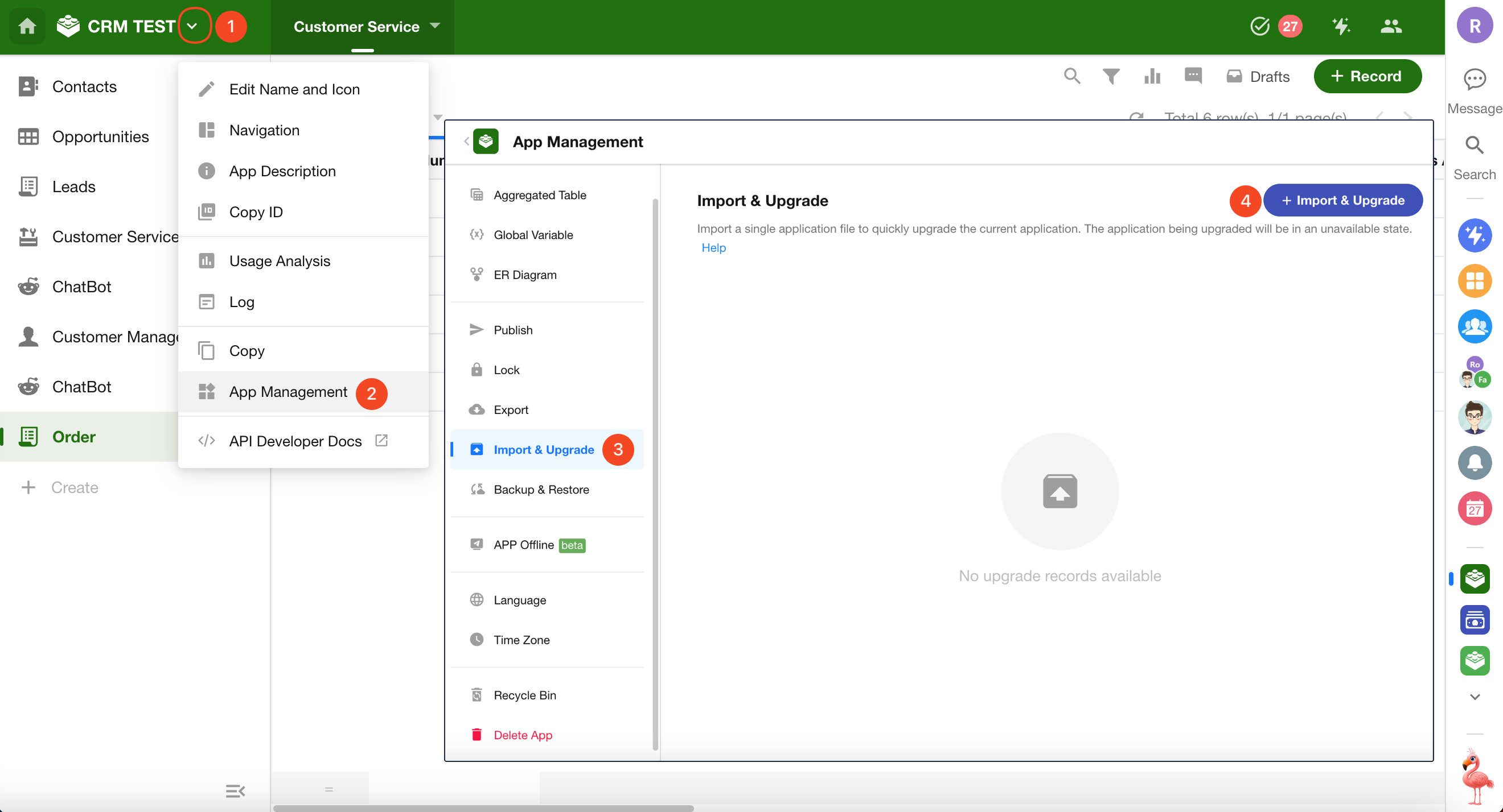 After the import is complete, an upgrade record will be displayed in the Application Import and Upgrade page.