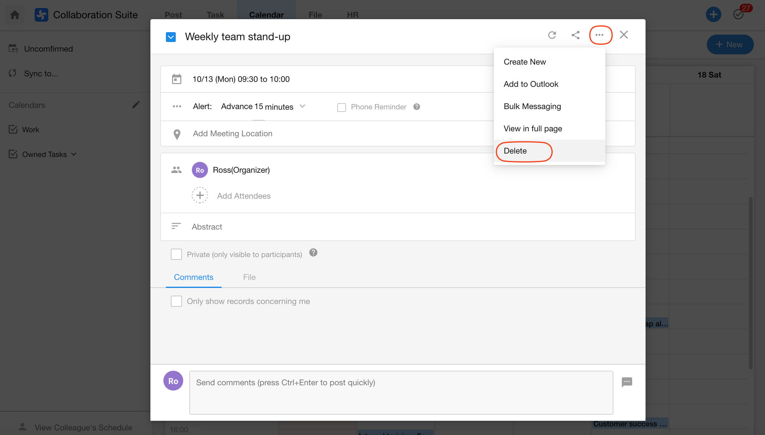 - If you are the creator of the event, you can delete the event but cannot leave it.