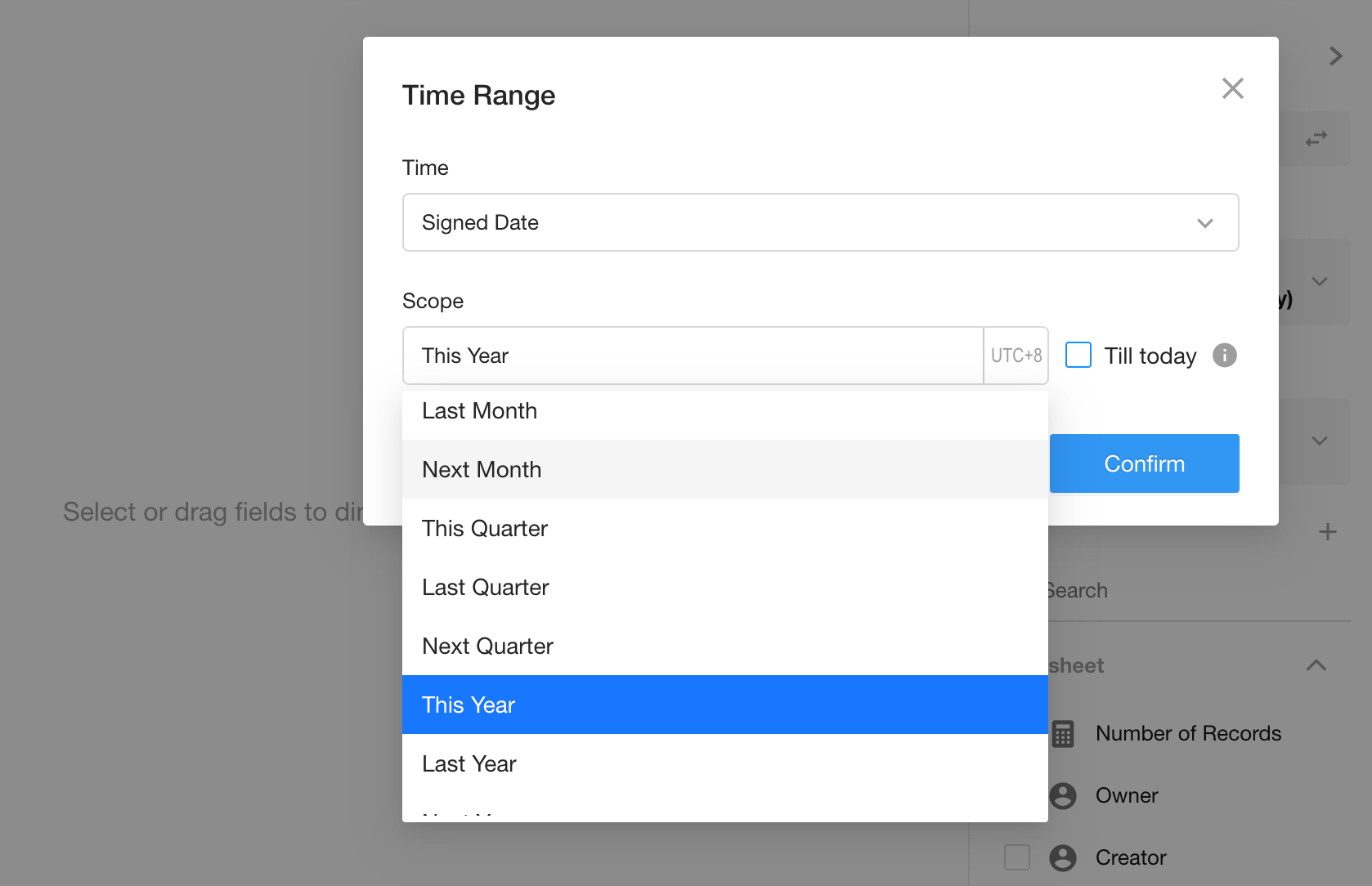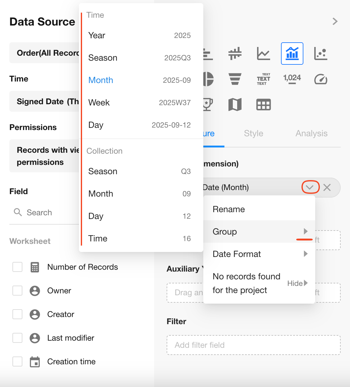 Select the “Signed Date” field, and set granularity to Monthly.
