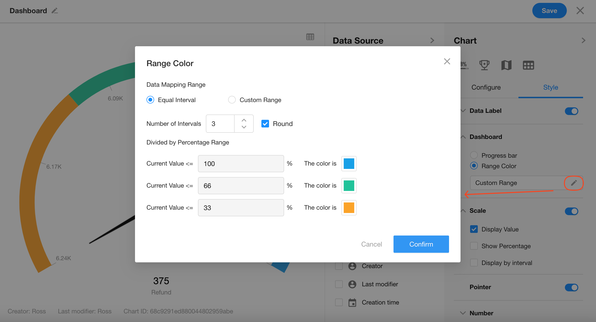Customize the progress ranges and colors displayed on the dashboard.