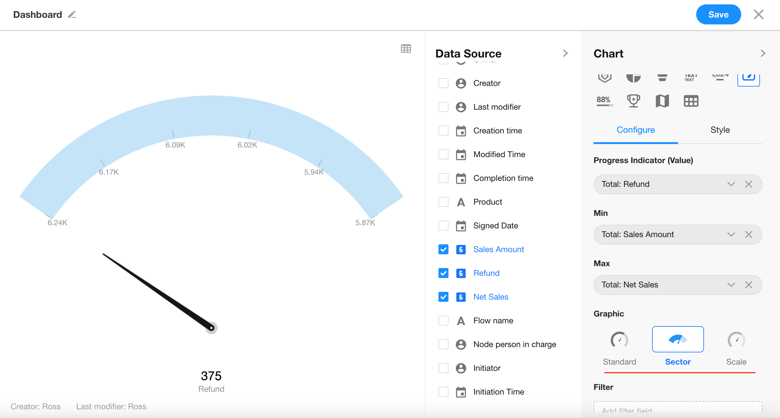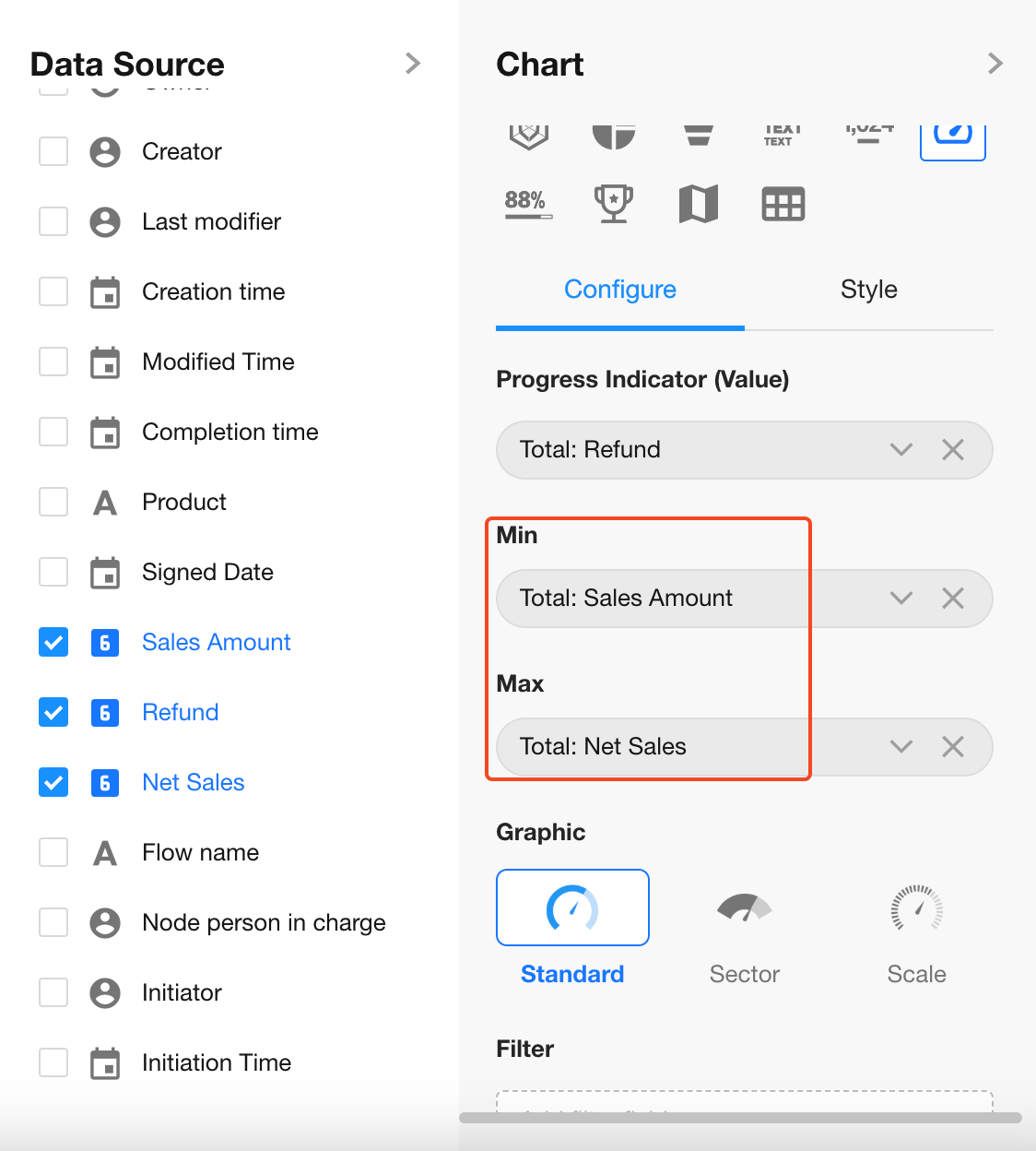 Maximum Value: Select the "Net Sales" field