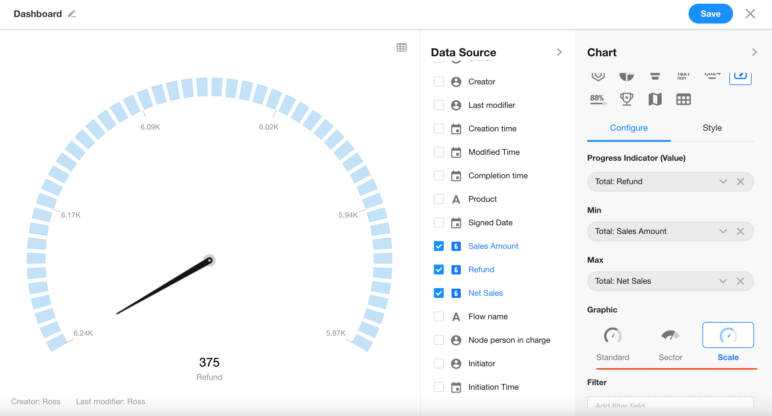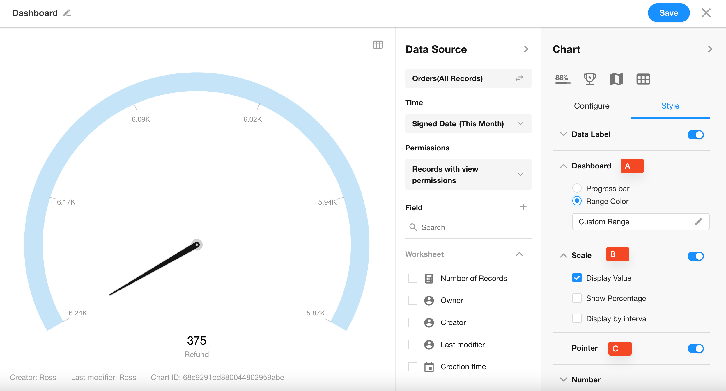 Click the “Save” button to complete the chart setup.