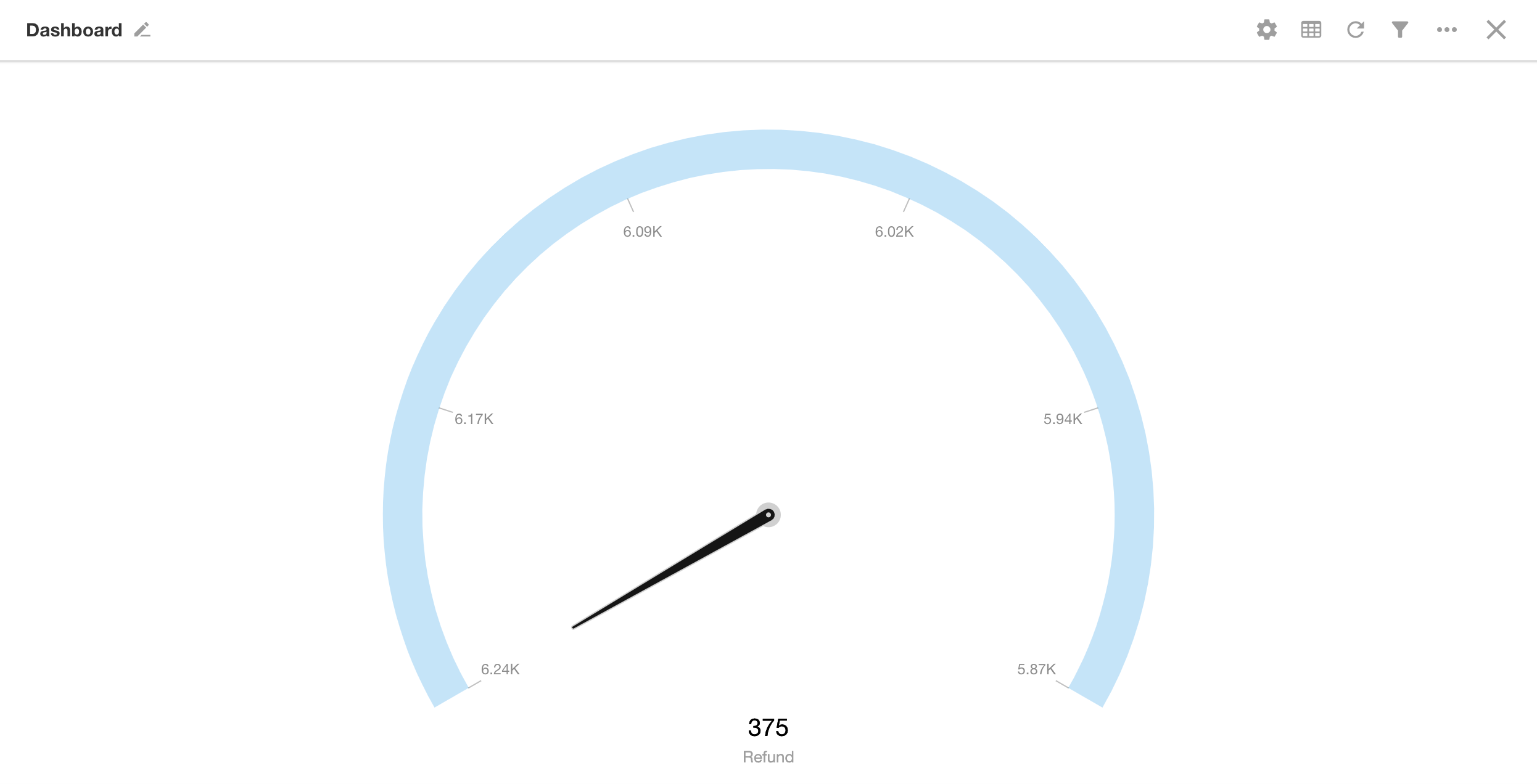 A dashboard resembles a clock face, featuring ticks and a pointer. The ticks represent the scale, and the pointer indicates the current value of a selected metric. It’s commonly used to monitor a specific value range, providing a clear visual of where the data falls within that range.