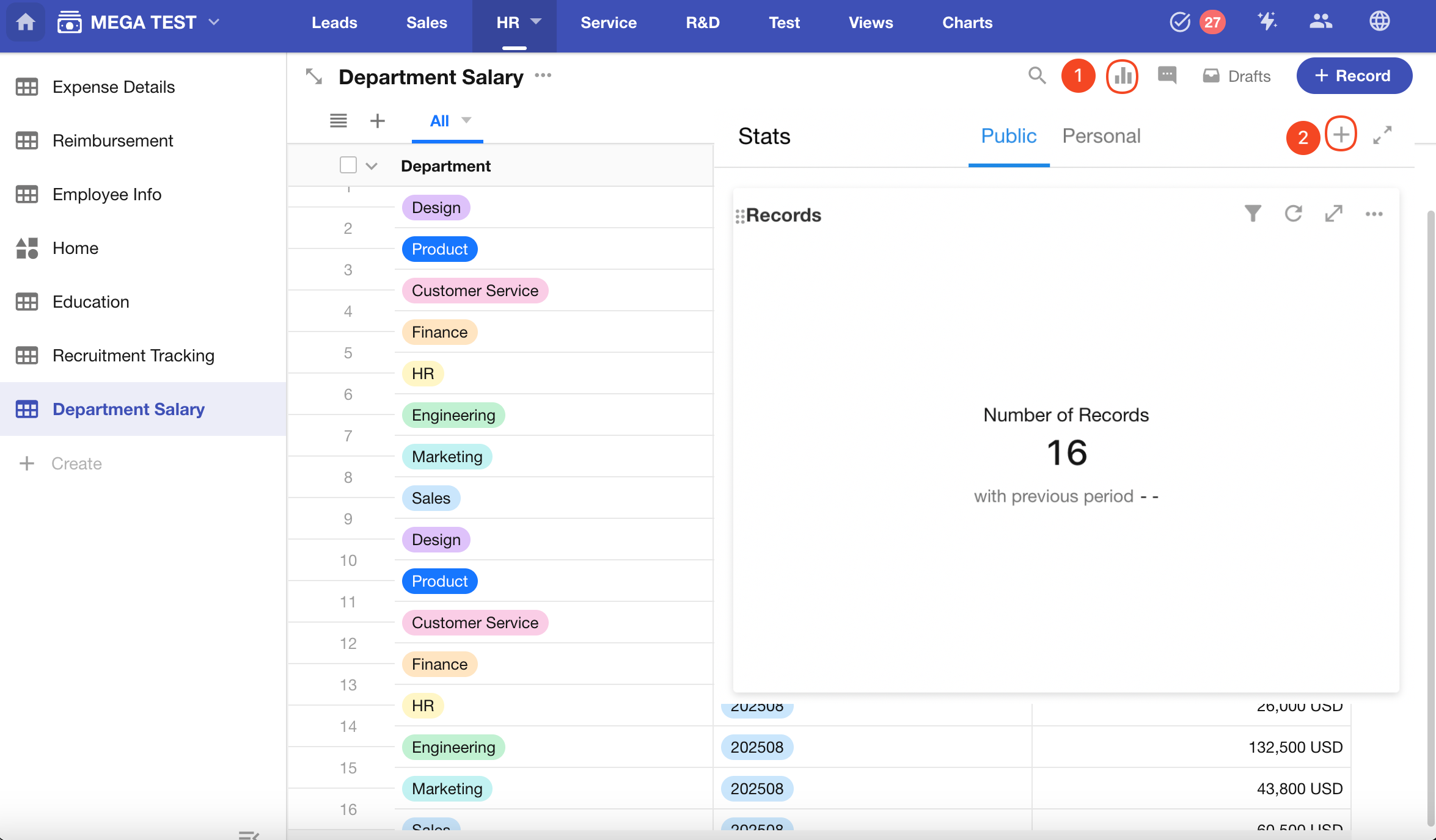 Dimension: Use a non-numeric field (e.g., Stage) to group records.