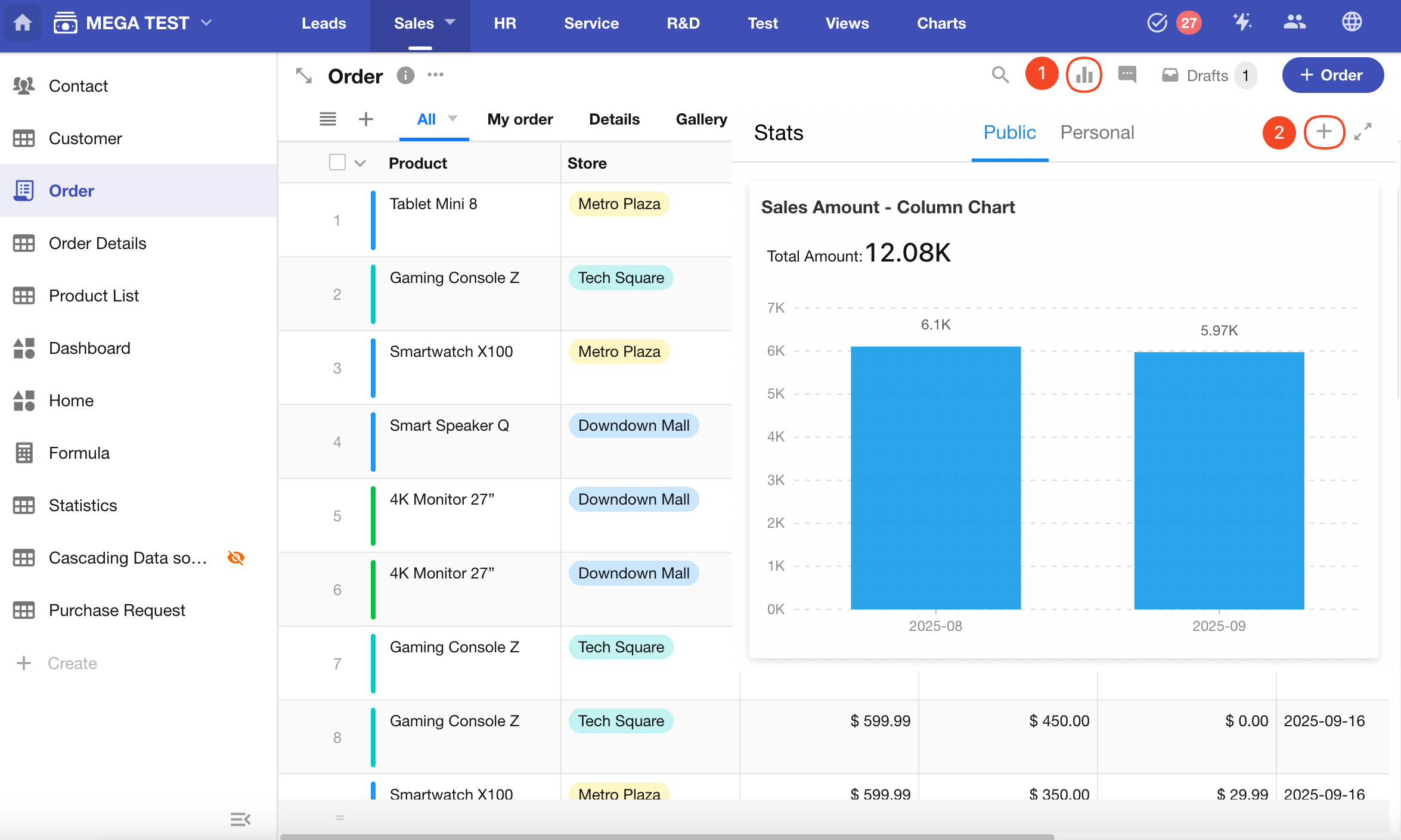 Data Range: Order records created this month