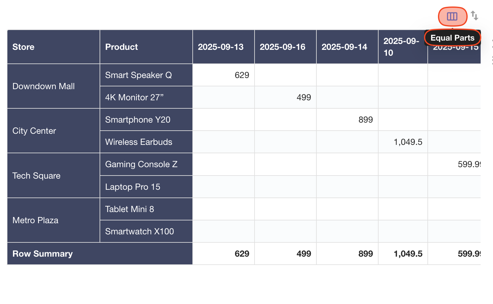 When using Fixed or Percentage mode, the quick "Equal Parts" button is available for easy adjustment.