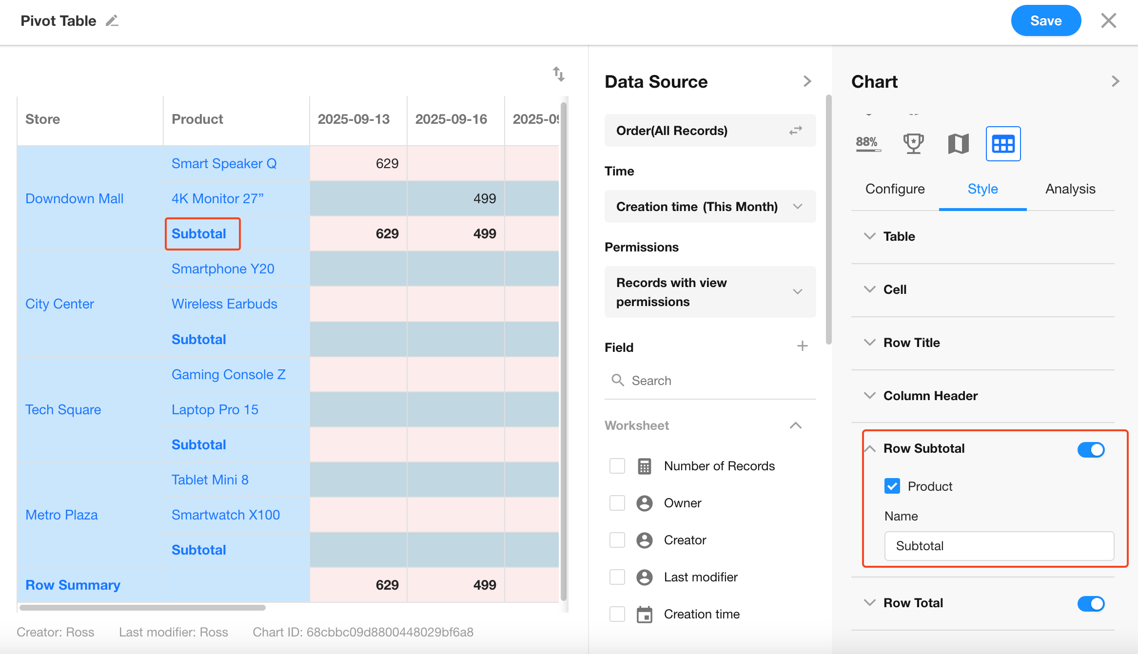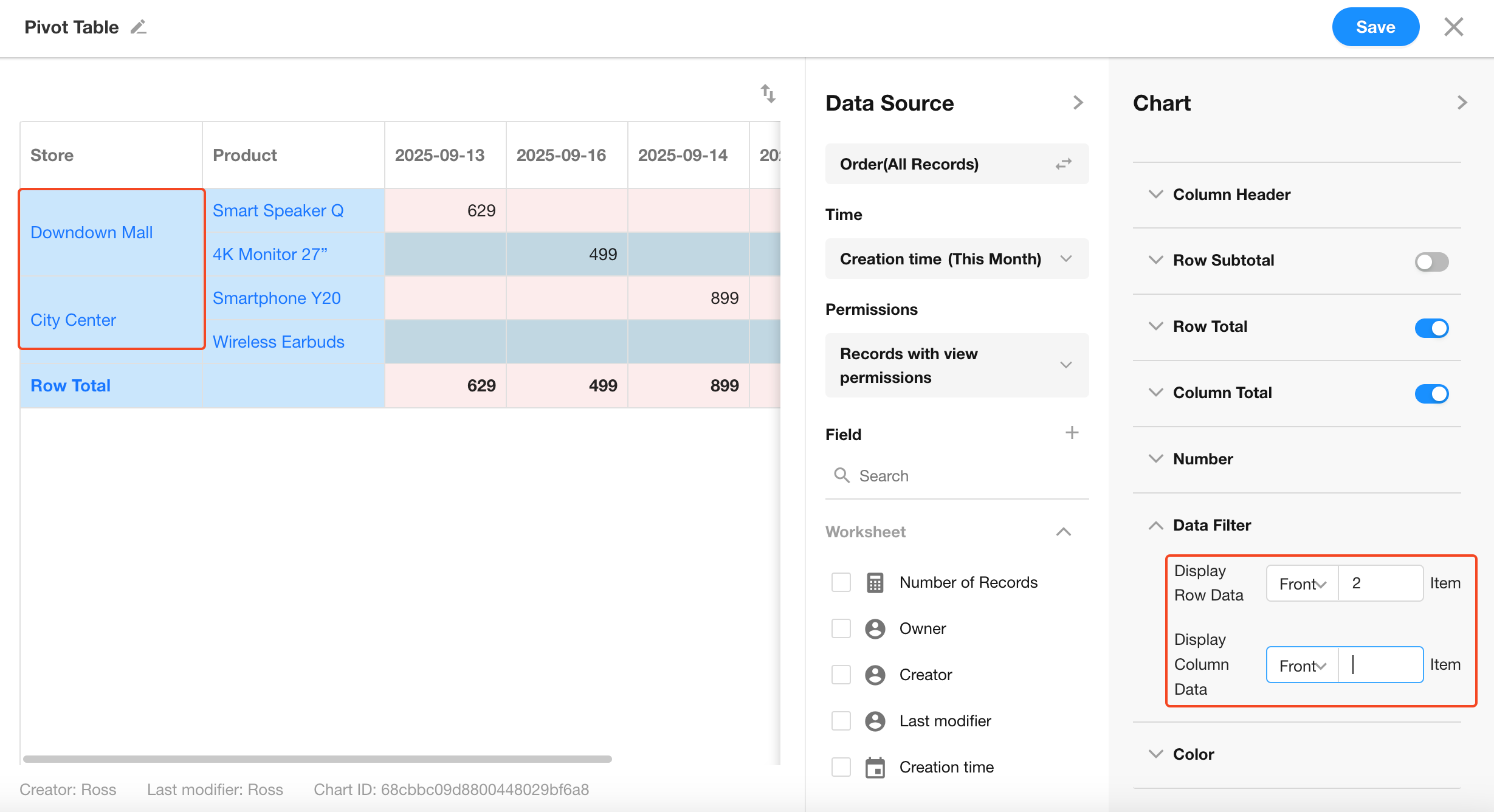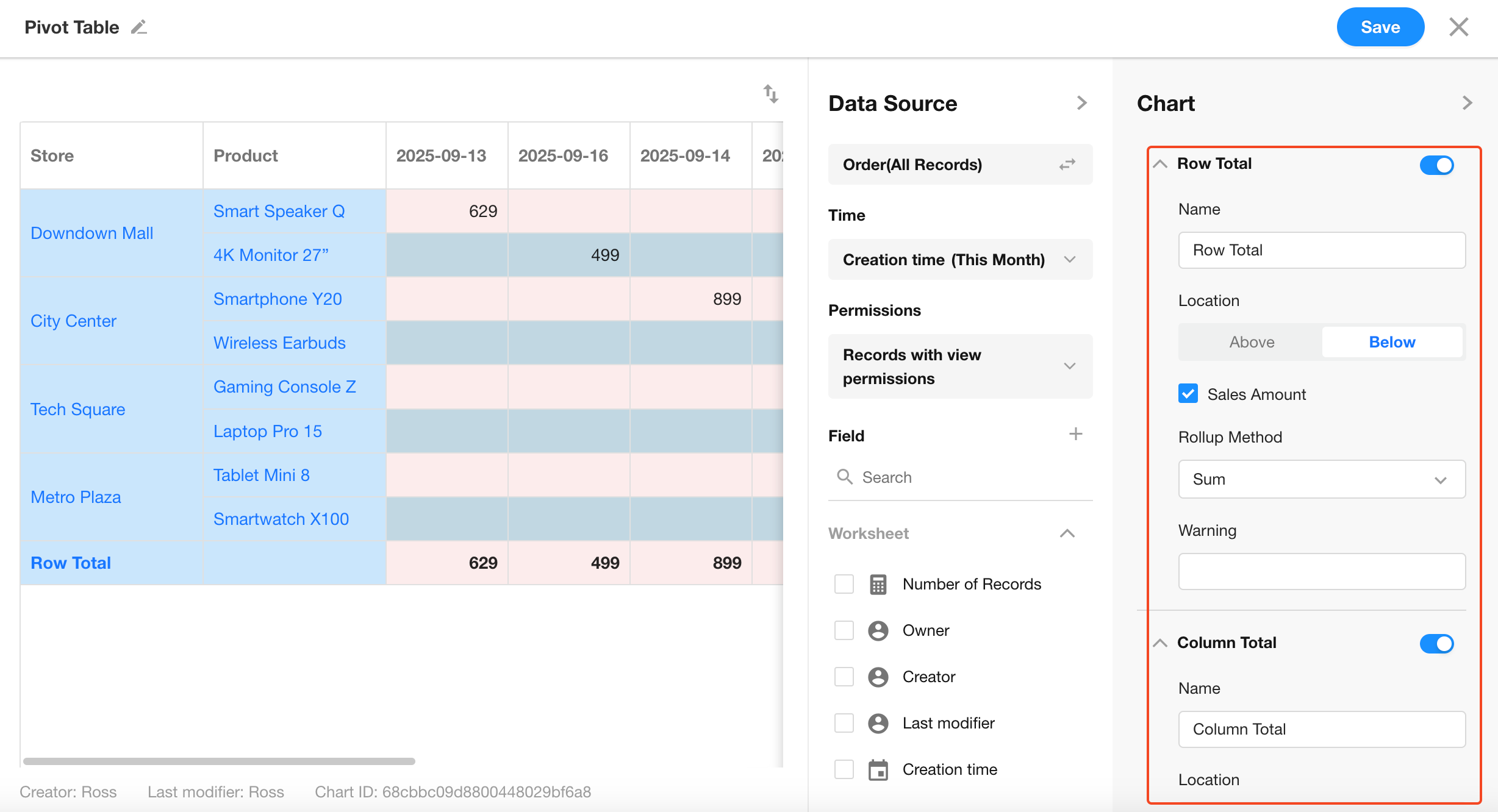 Enable to display totals for rows and columns, and configure their placement.