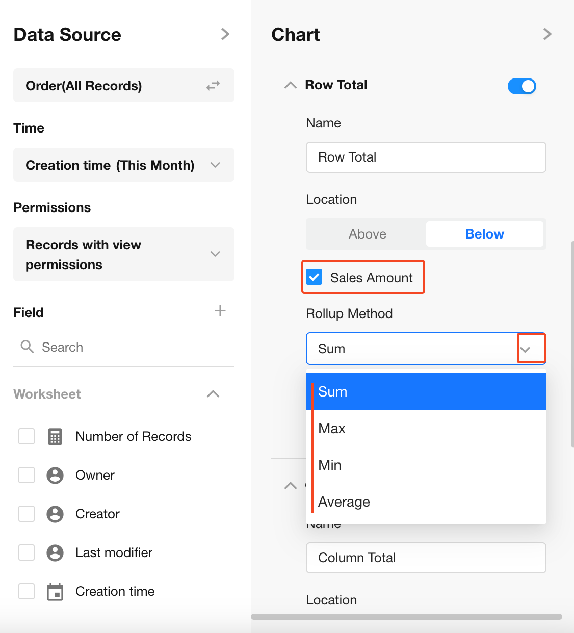 Position: Choose where the total column/row should appear.