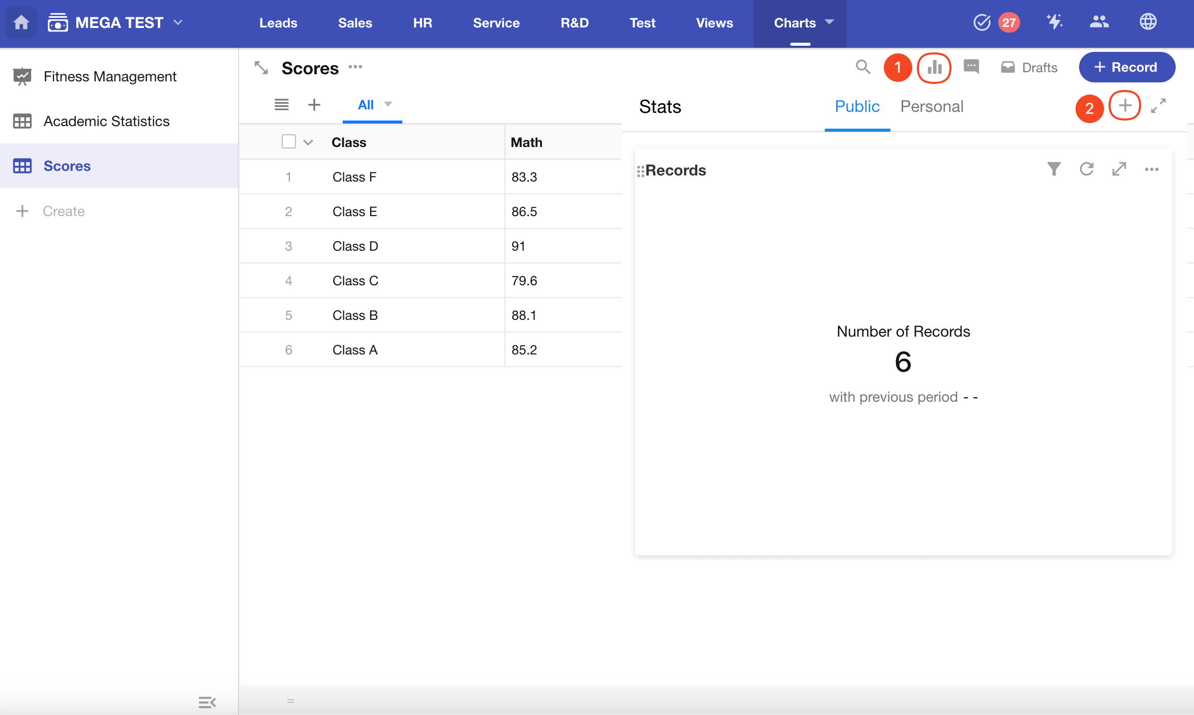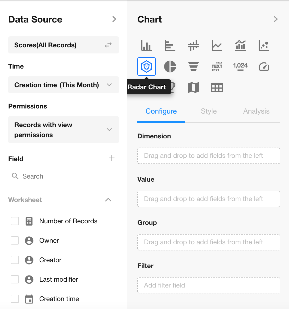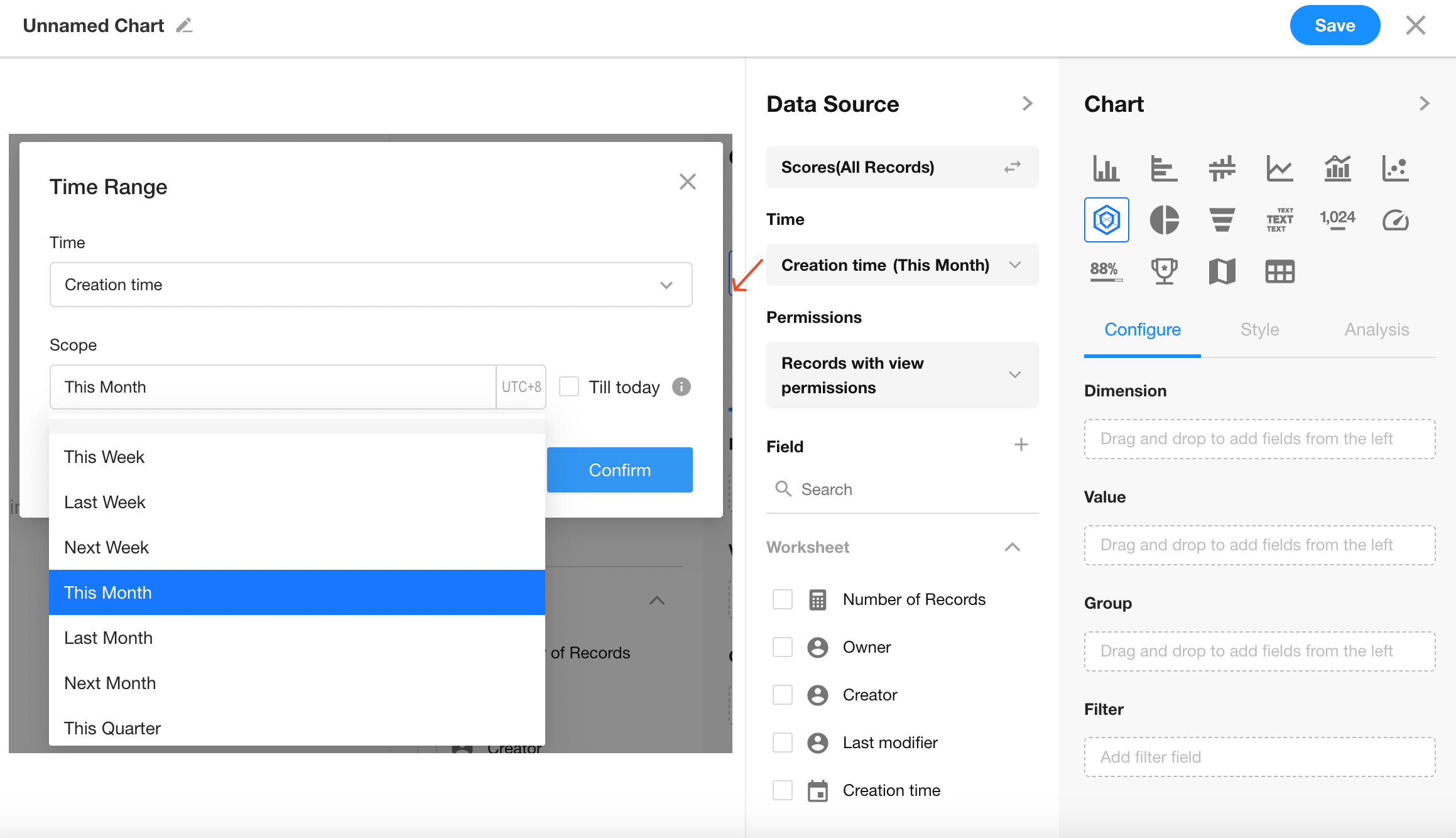 Filter records in the "Grade Statistics" worksheet where "Creation Time" is within the current month.