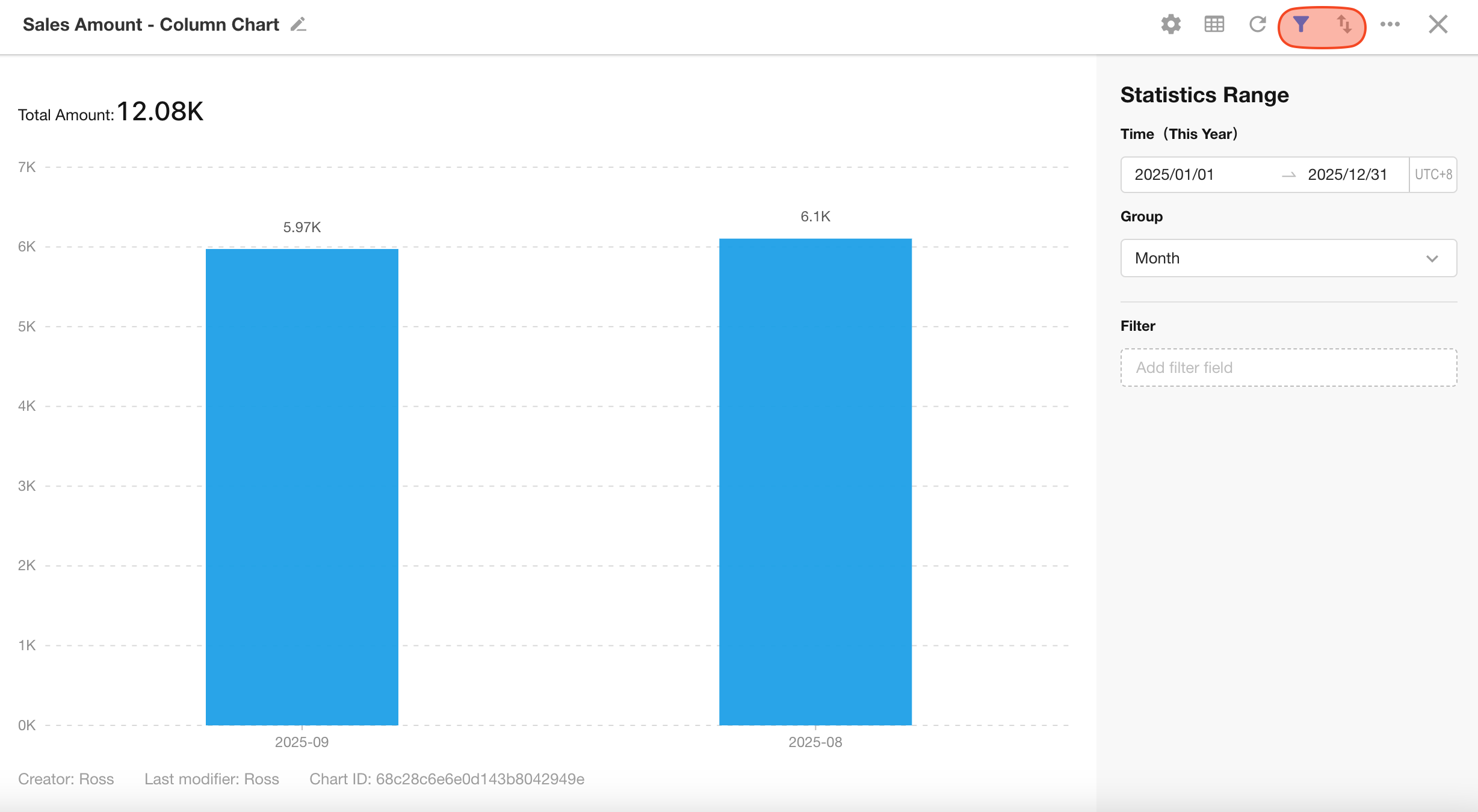 Users can apply additional filters based on the configured chart. The filtered data will not exceed the scope defined by the chart settings.