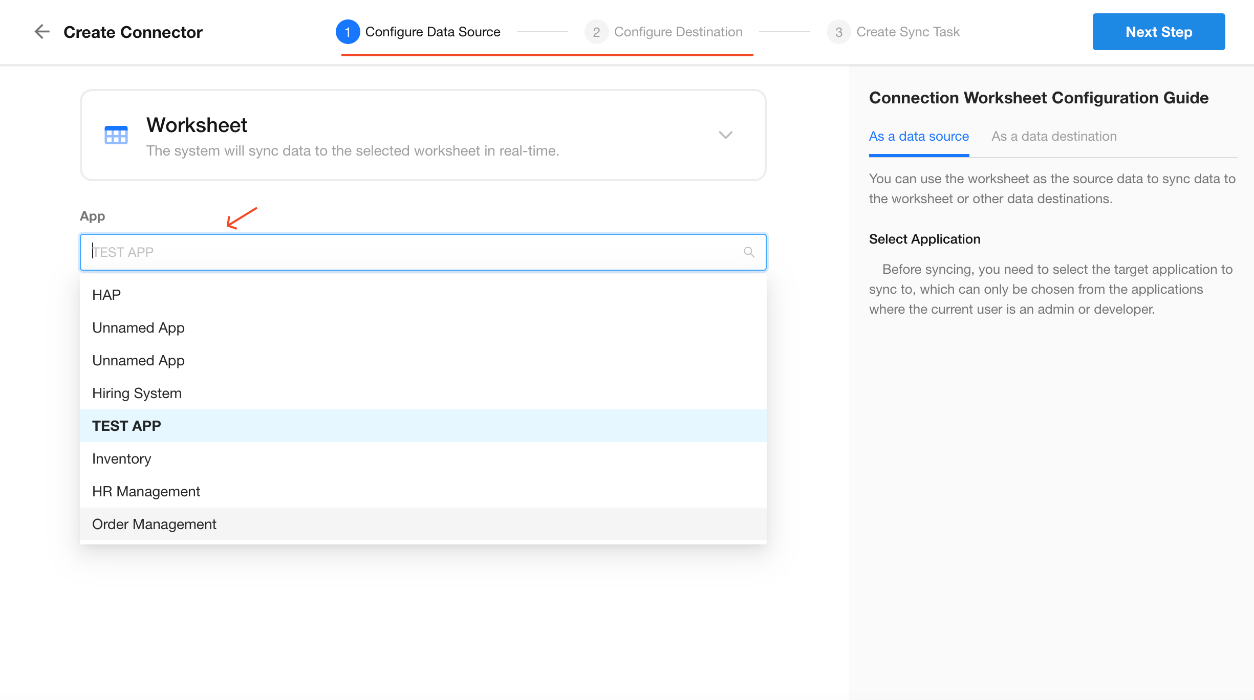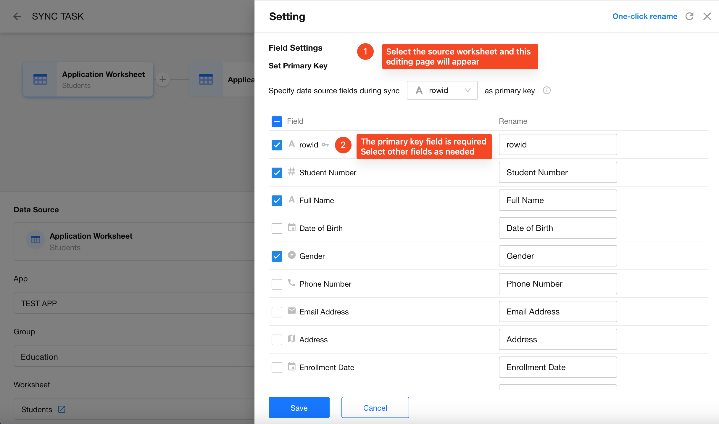 If the app name, worksheet name, or field name contains special characters, it may cause selection errors or sync failures. The following characters are not allowed: