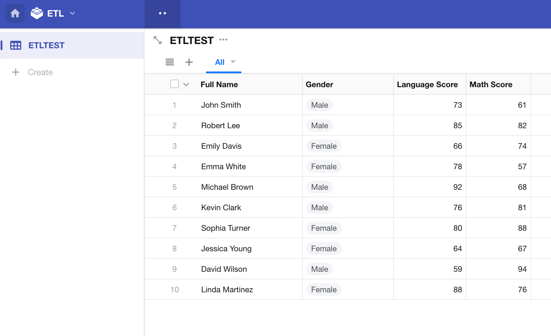 Assume you have three worksheets: Students, Math Scores, and Language Scores. If you want to display the scores for each subject in a single table for every student, you can use the Join Tables node to merge the data from all three worksheets into one.