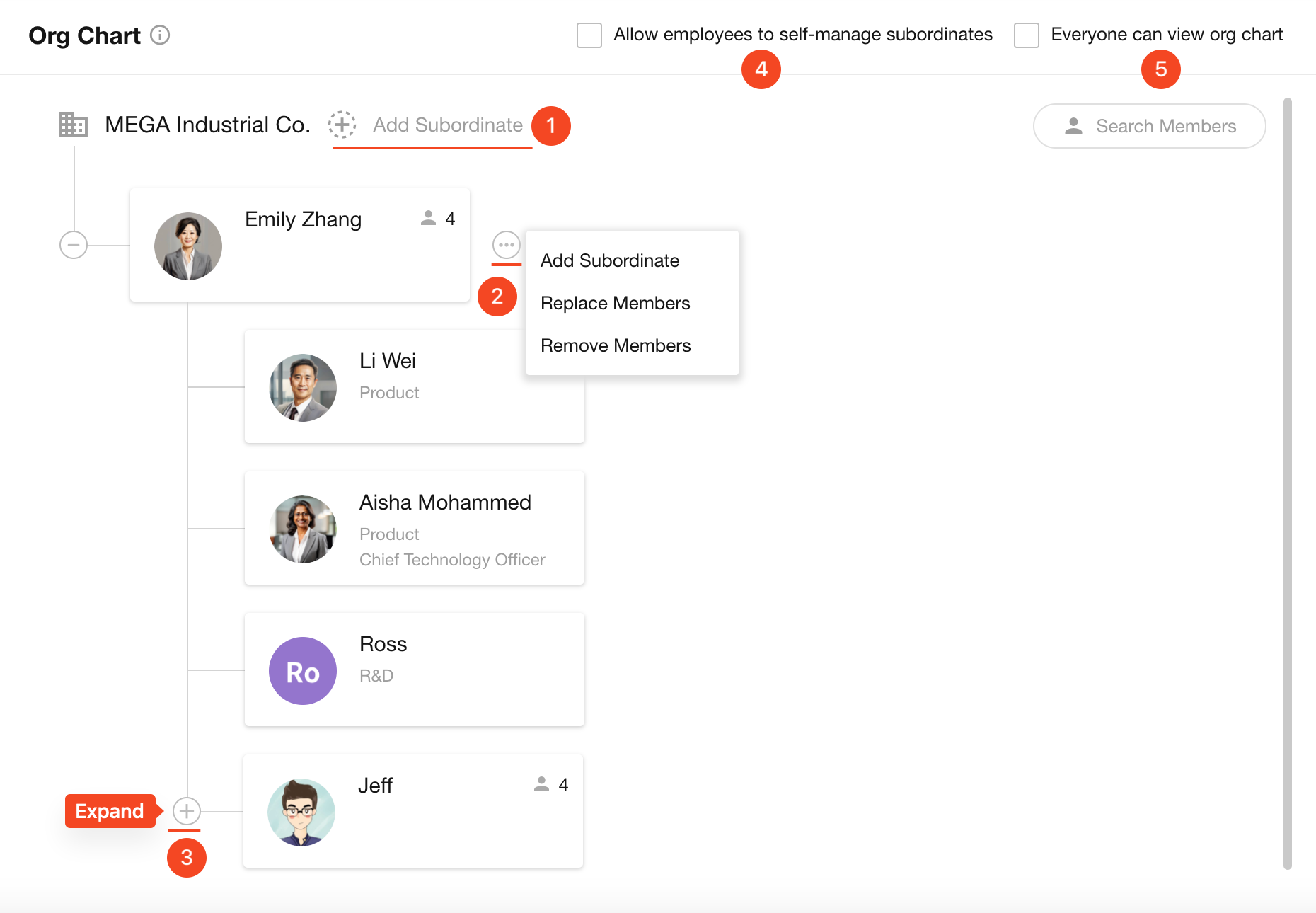 - When a member is removed, only the reporting link between them and their supervisor is deleted. Their relationships with subordinates remain intact. However, both the removed employee and their subordinates will no longer appear in the company’s org chart. If the removed employee is added back later, their original structure will be restored.