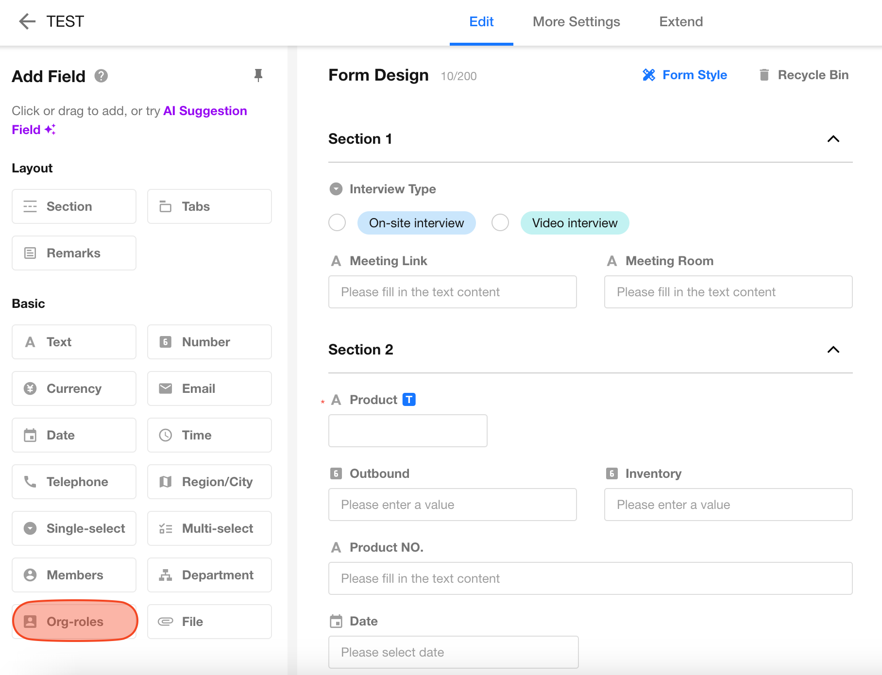 Compared to departments and job titles, organization roles offer a more flexible way to group people using labels such as "Project", "Engineering", "Production", "Sales", or "IT". Once an organization role is defined, you can directly assign it in apps to grant permissions to its members.