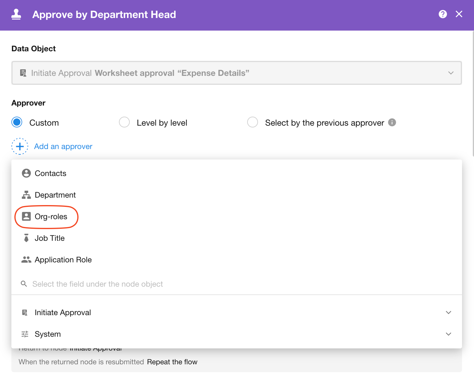 Approval node: Add approvers by organization roles