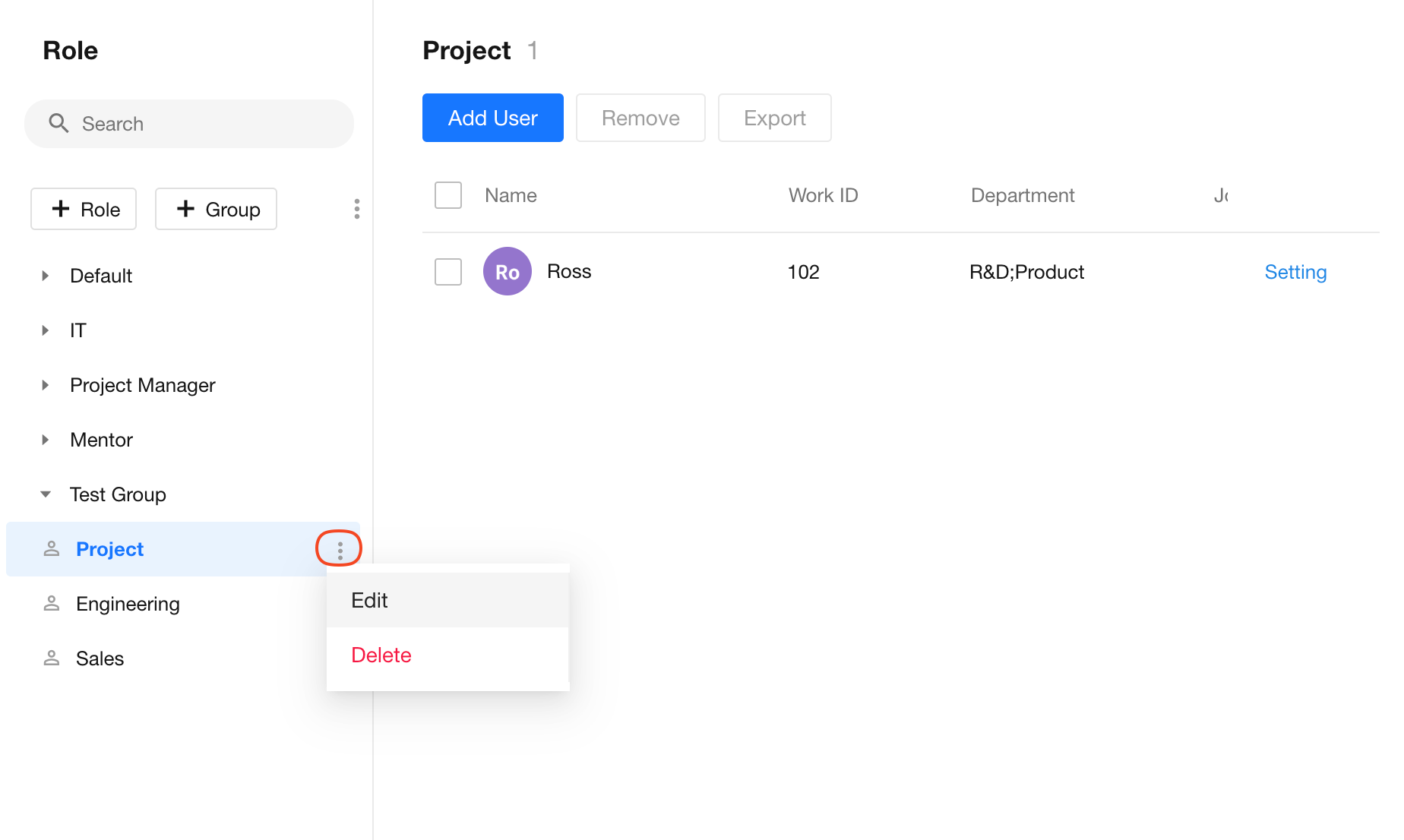 2. Edit Role Name/Add Remarks/Delete Roles