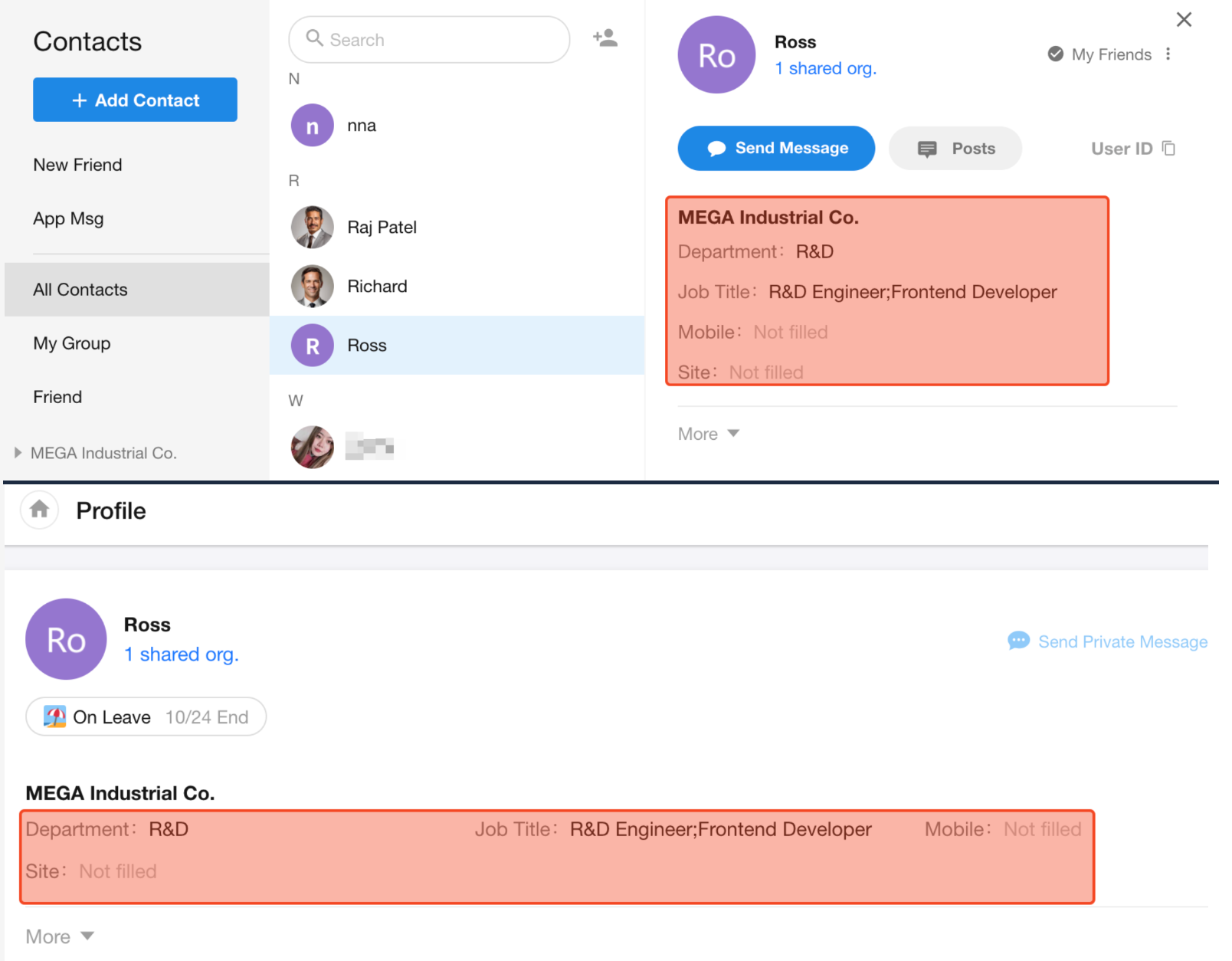 Selected members can only view contacts in their department (including members and department structure). Organization Admin can also set whitelists and add members from other departments.