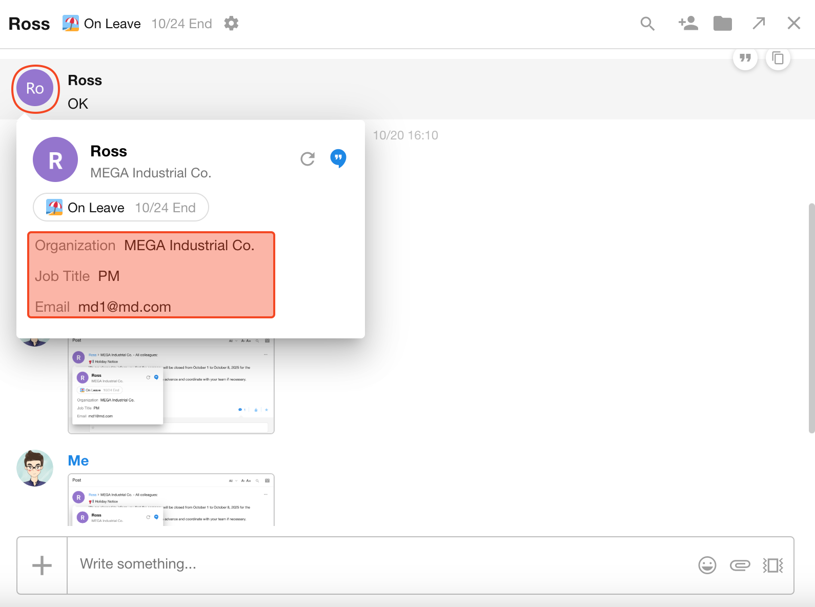 Business card refers to the pop-up information layer shown when clicking a member’s avatar within the app.