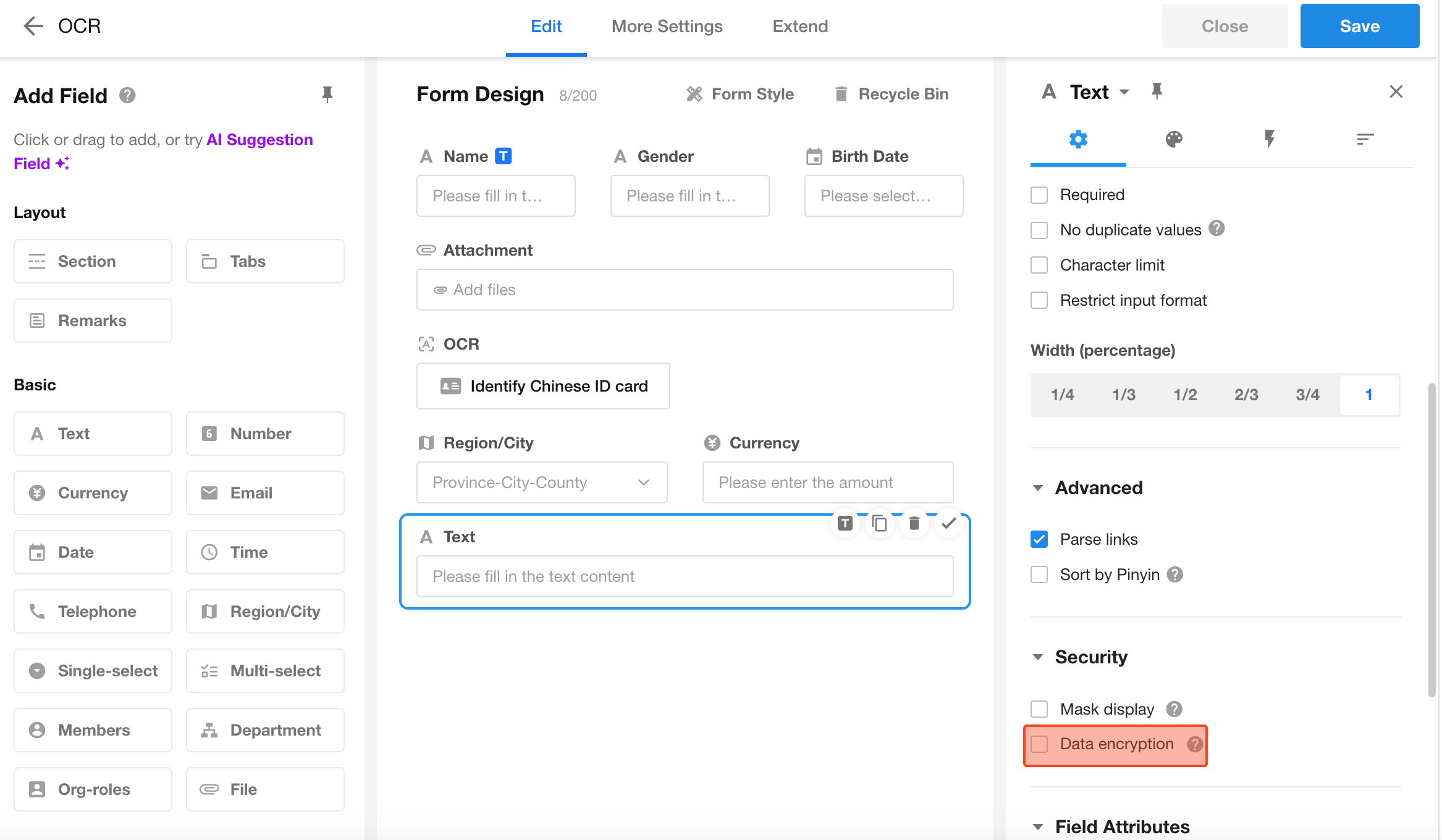 Some business data involves sensitive information that may require encryption, such as customer account numbers, ID numbers, bank card details, phone numbers, emails, and passwords. Once encrypted, the data is stored in ciphertext in the database and decrypted for display according to defined rules.