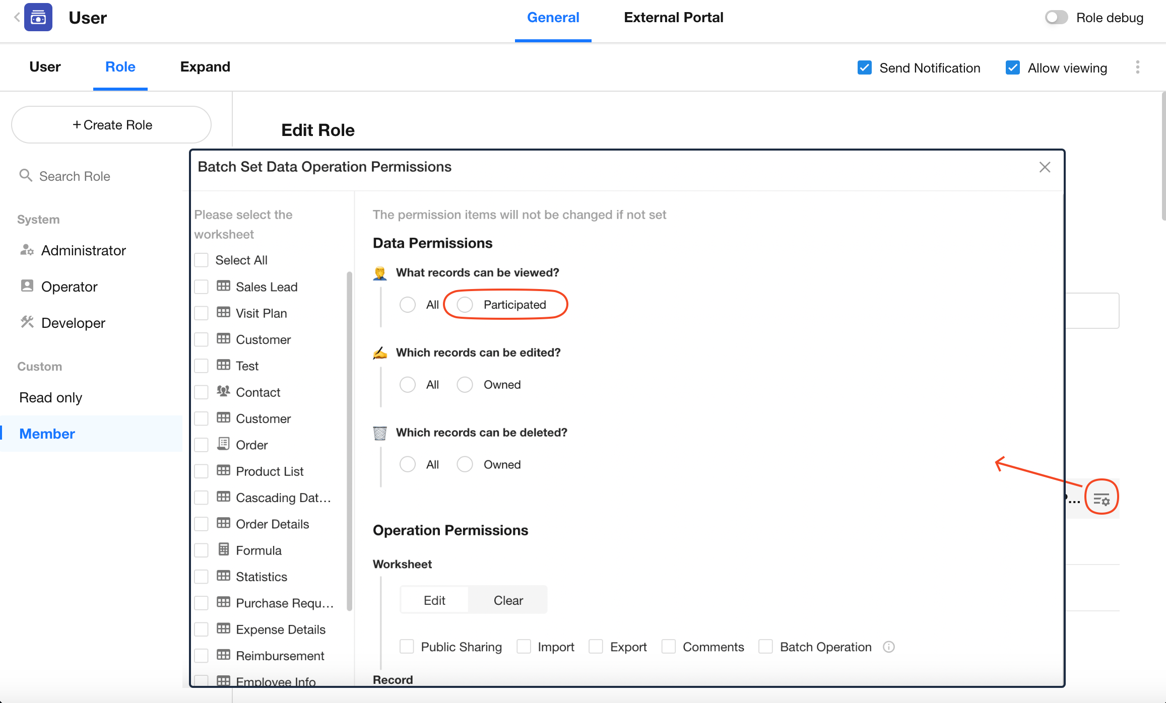 In user role permission settings, there’s an option called Participated when defining record access scope. This includes both Owners and Members. If you're listed as either, you're considered a participated user.