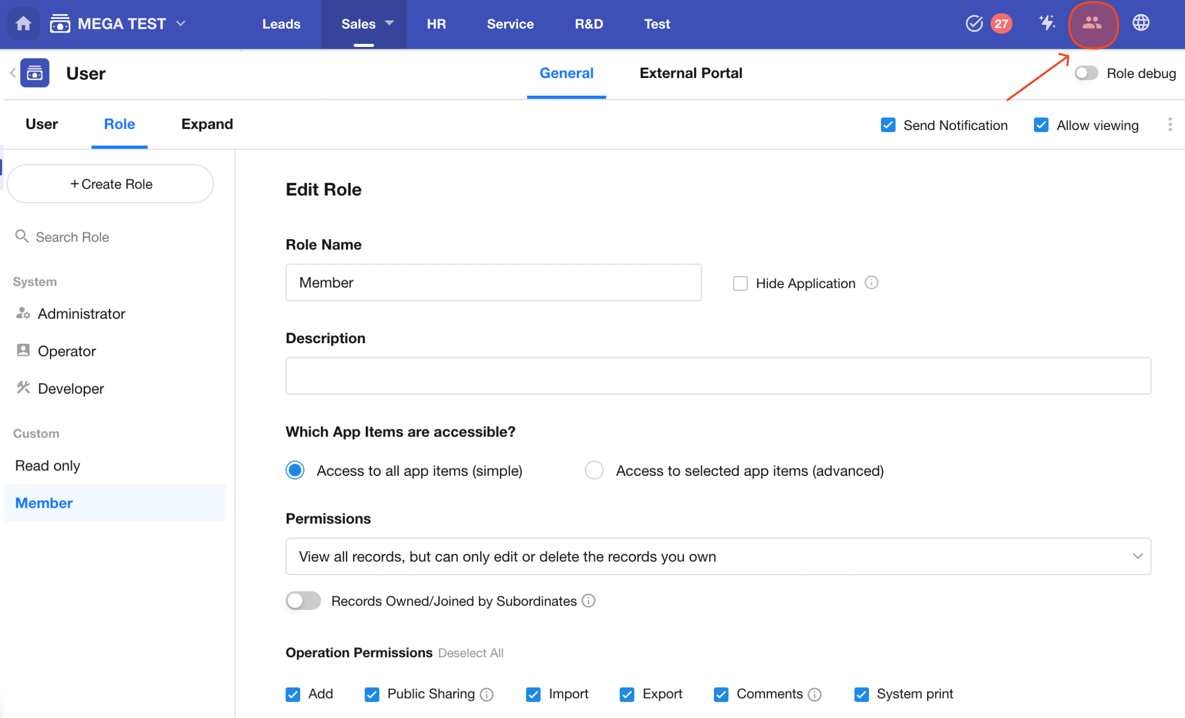 Collaboration between multi-role users is essential in enterprise applications. Each role may have different levels of access to enterprise data. The permission configuration in the application is highly granular and supports custom setups to ensure that users have the appropriate operational permissions.