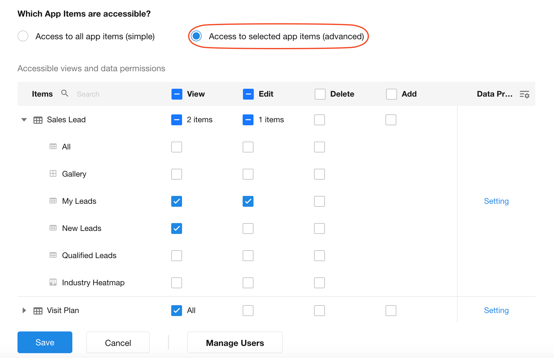 Mode 2: Access to Selected App Items (Advanced Mode)