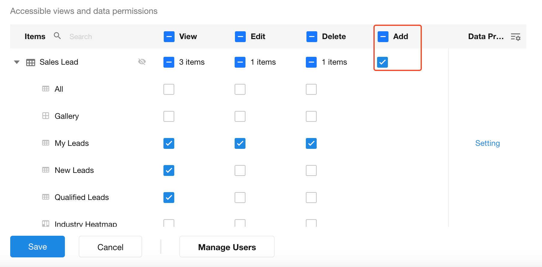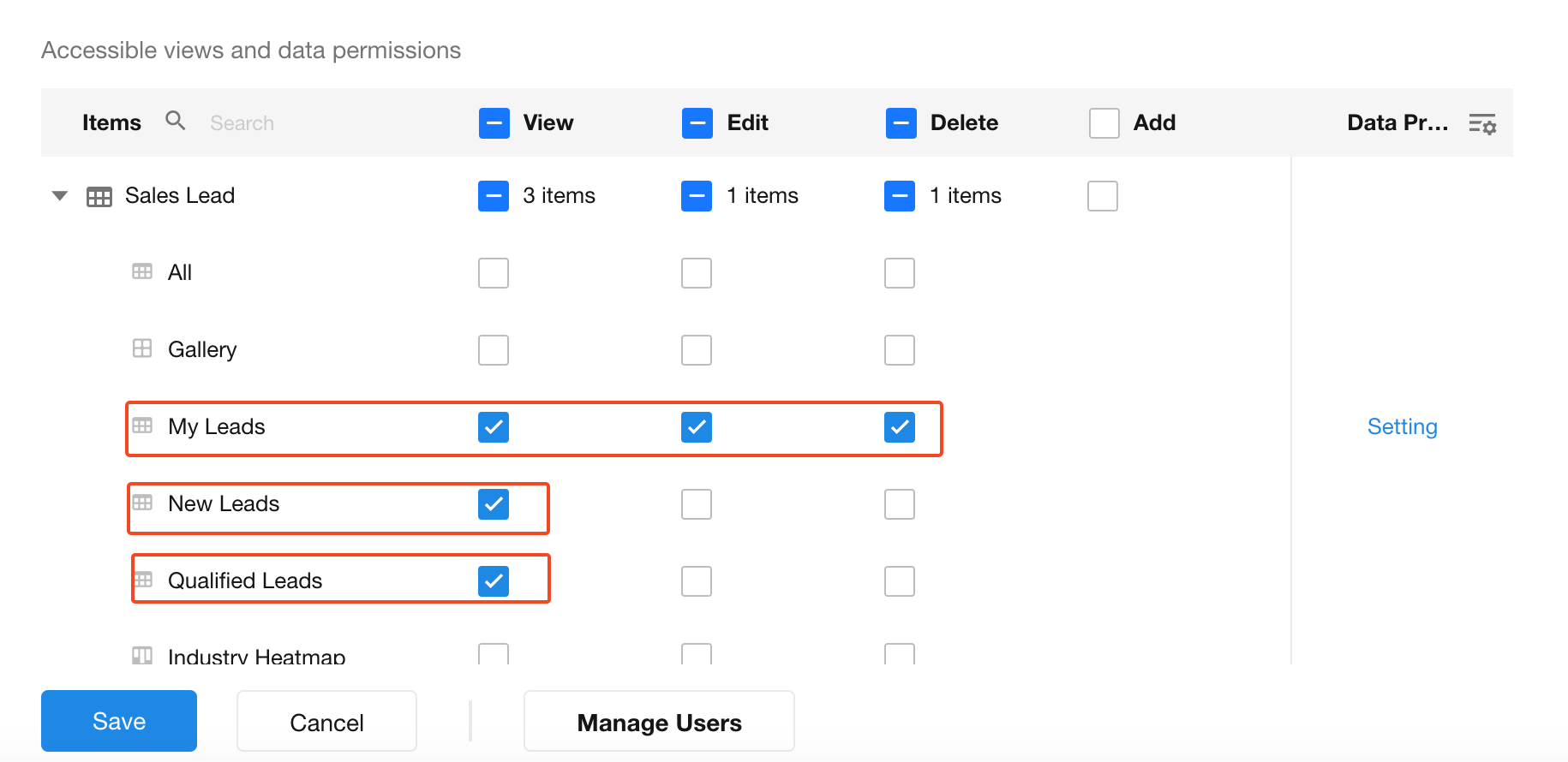 For example, in the “Qualified Leads” view, all qualified leads may be visible, but only owned leads can be edited or deleted.