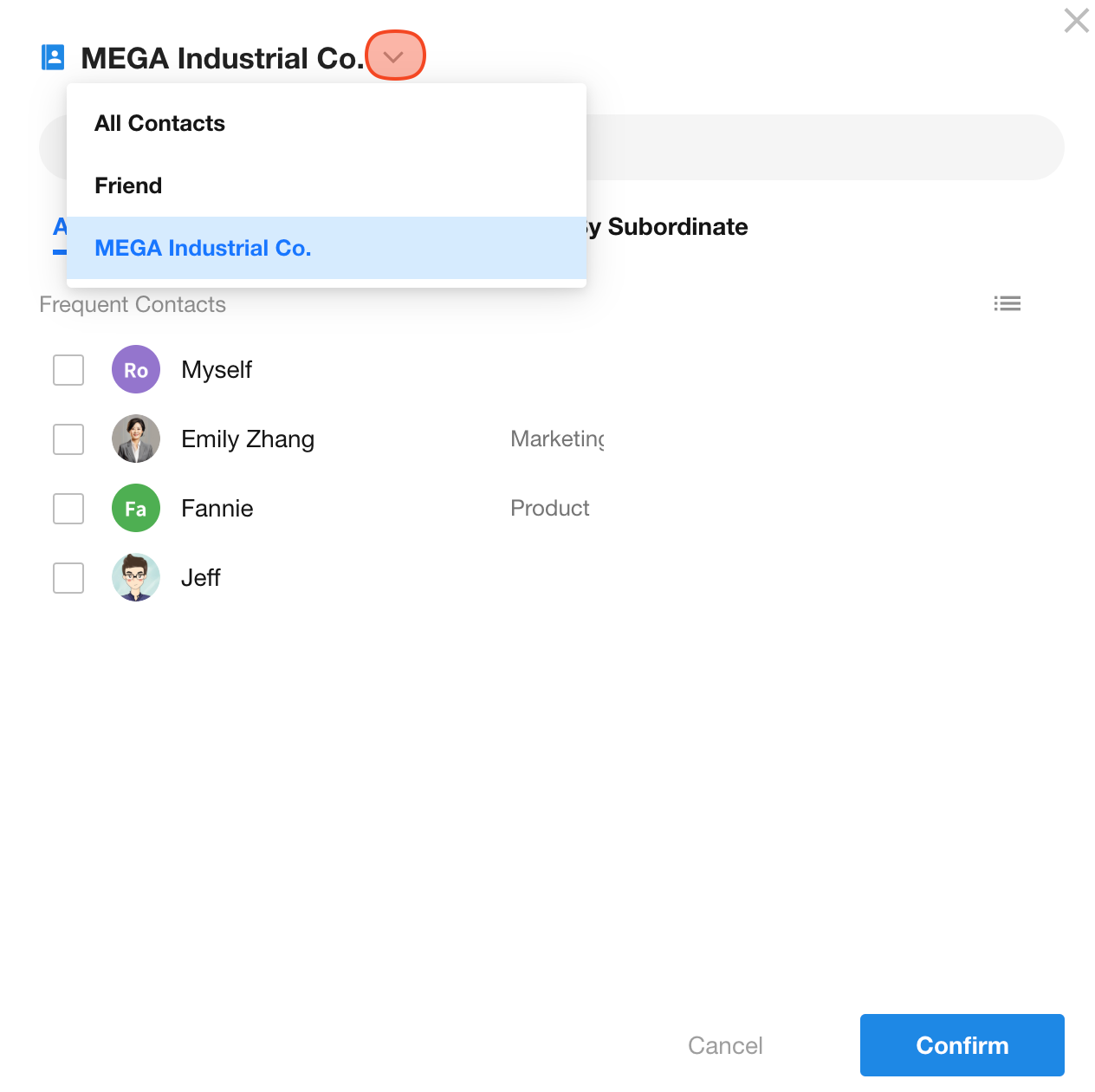 You can add members from the Contacts, including internal colleagues or external collaborators via Friends.