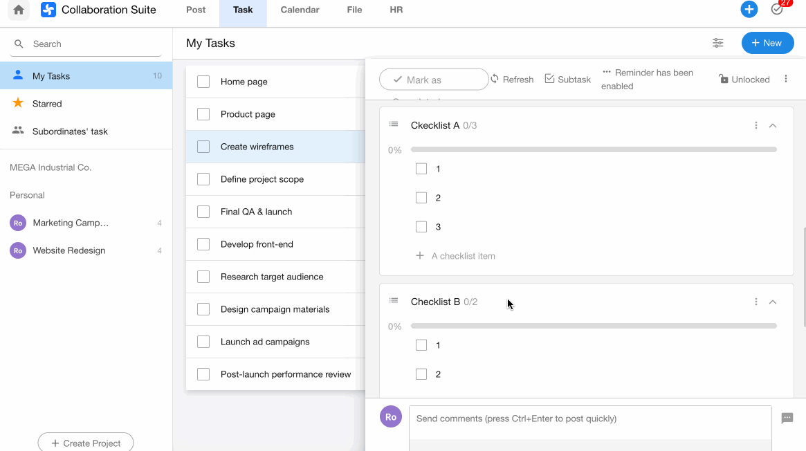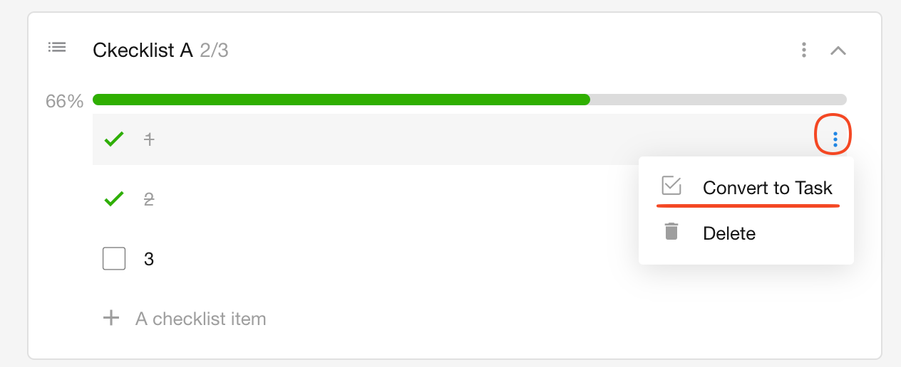 If a checklist item becomes too complex, you can convert it into a standalone task with one click.