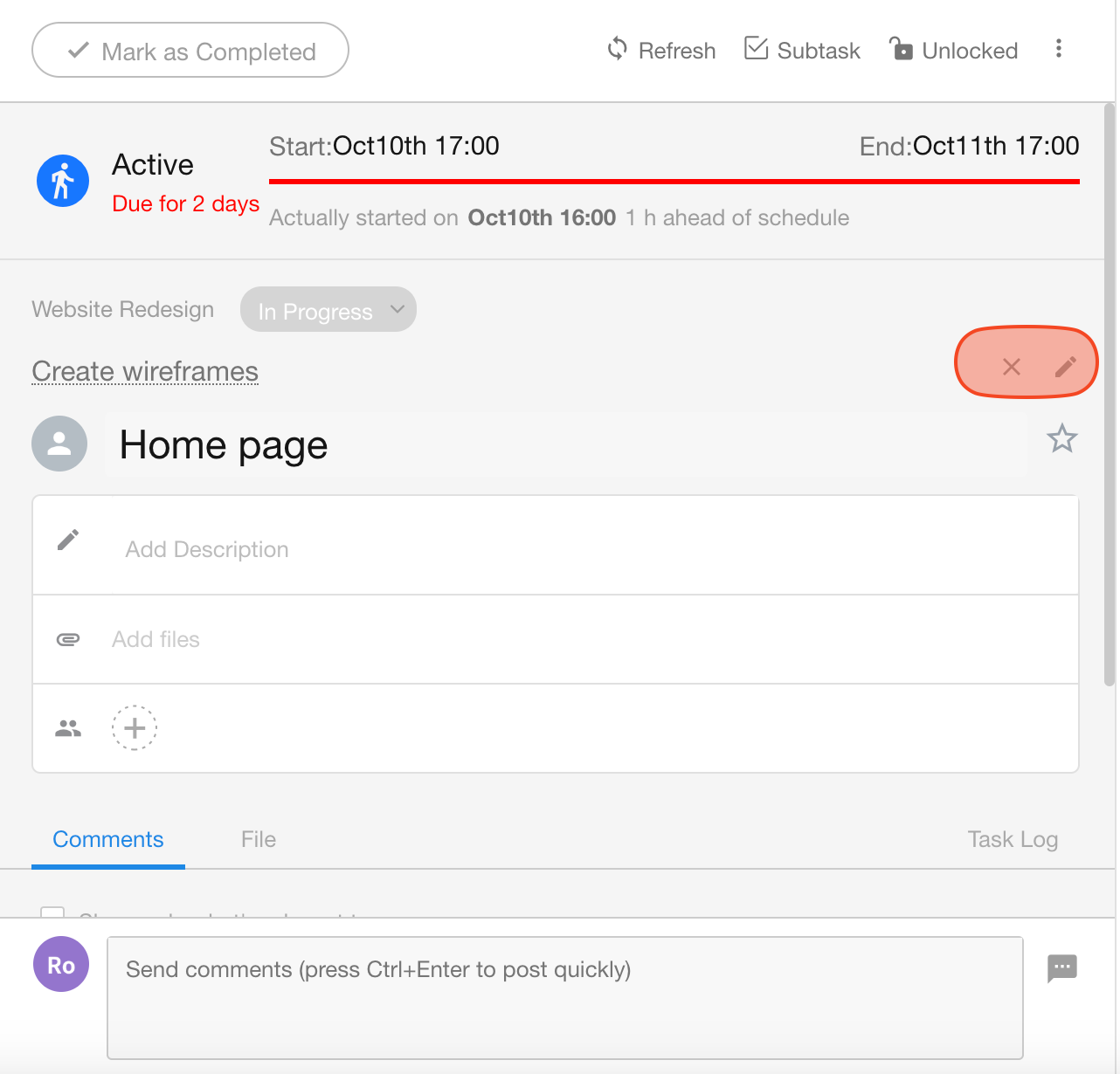 - If it’s linked to a parent task, the red box will only show the parent task name.