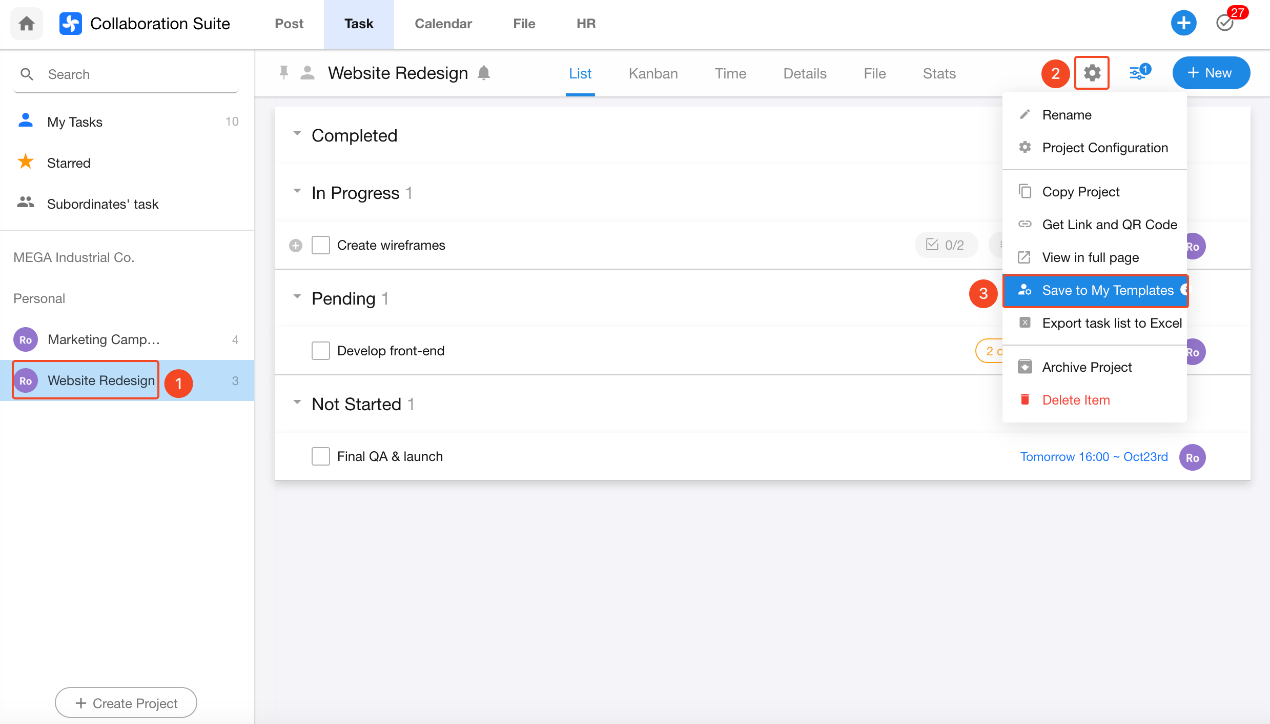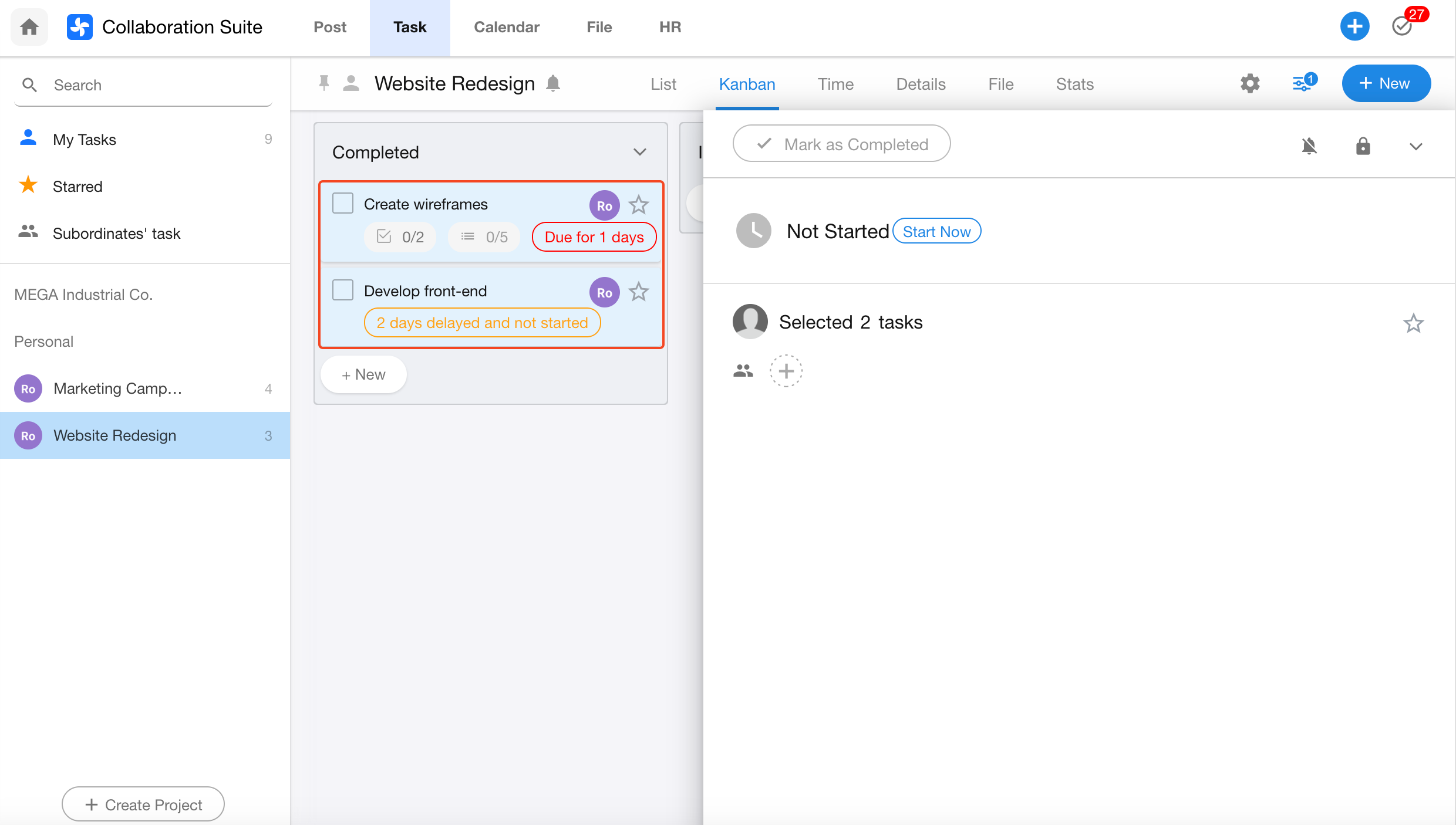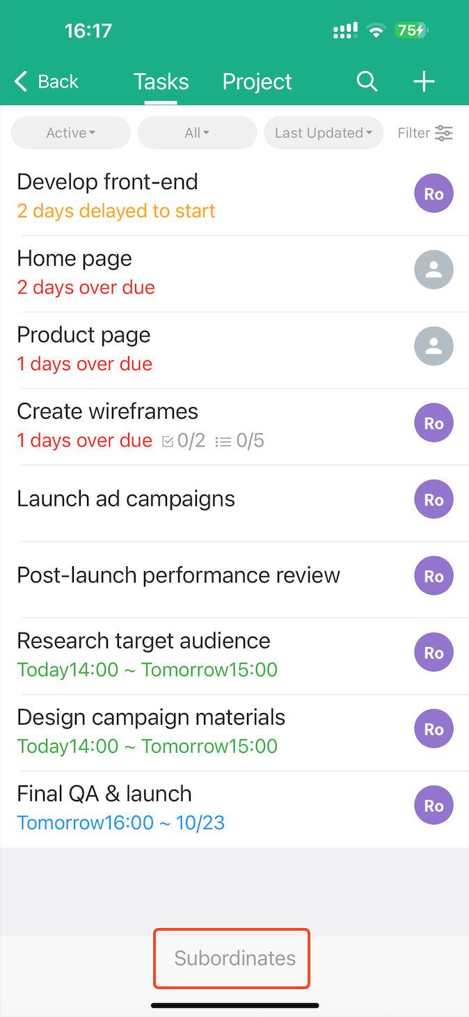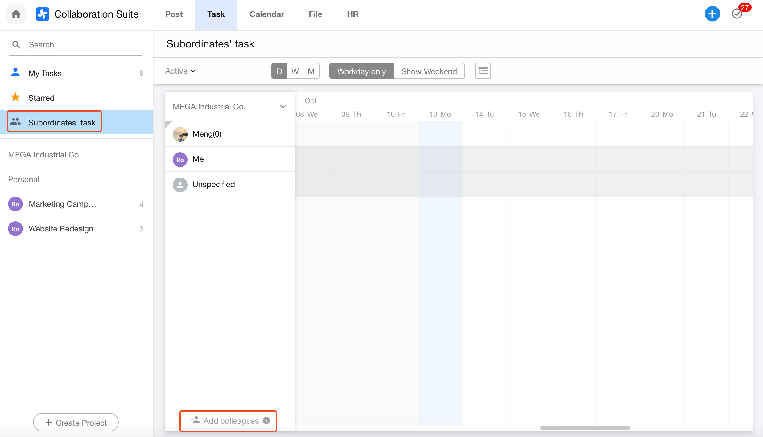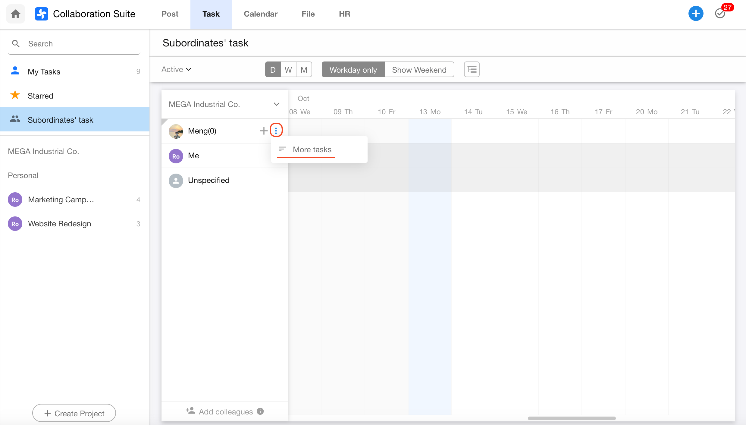 In the task module, click Subordinates' Tasks from the left navigation to view tasks of your team or colleagues.