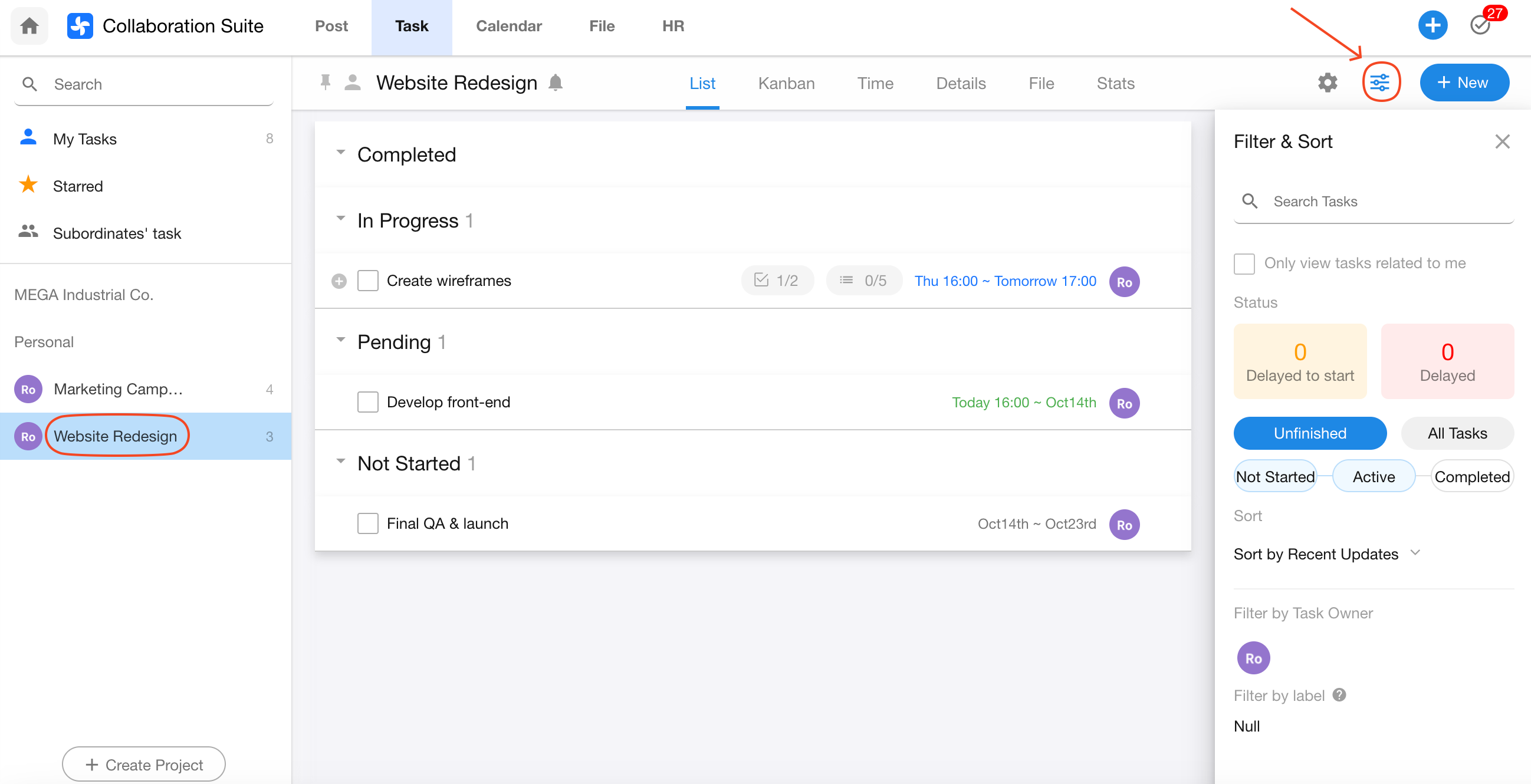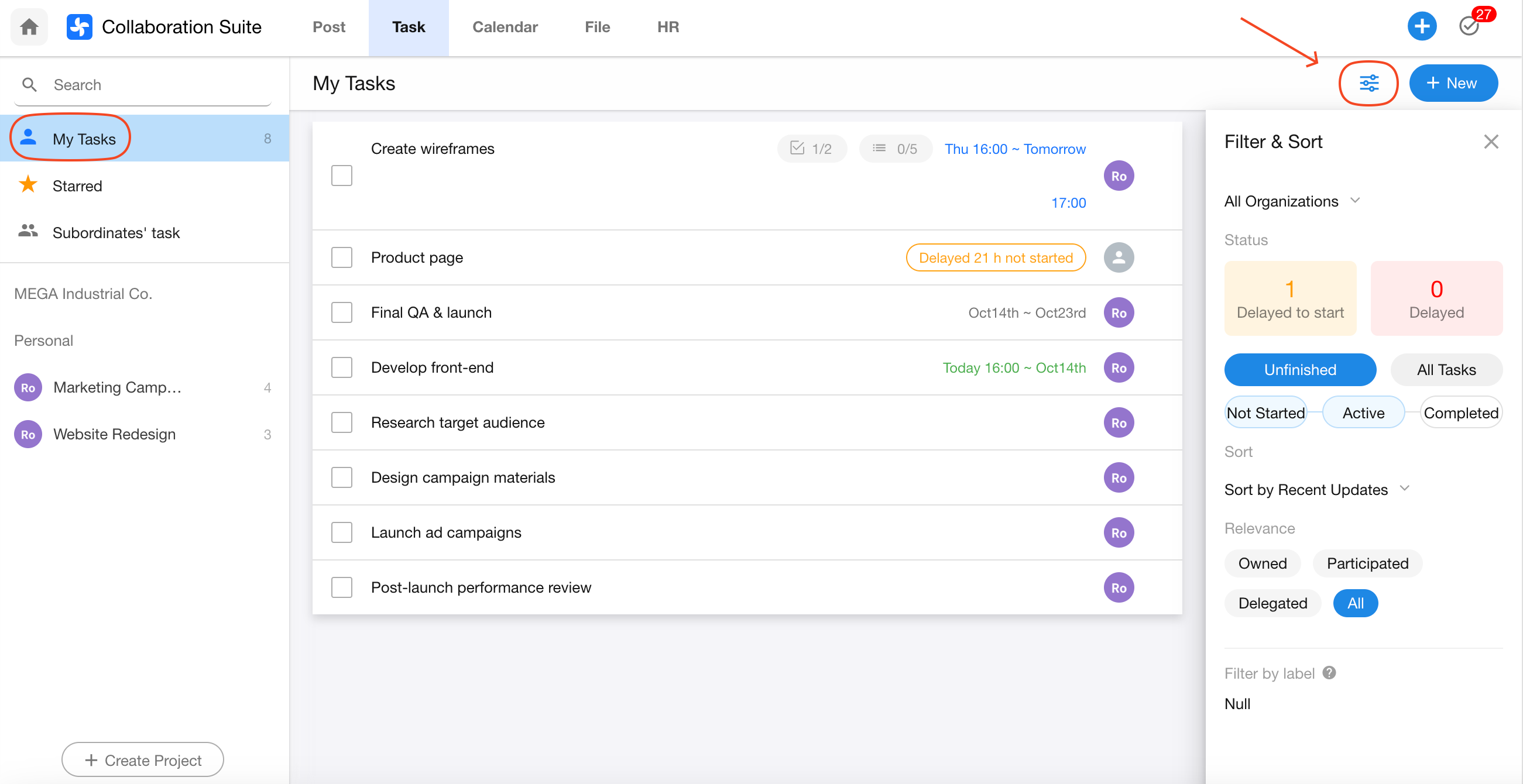 1. Filters in "My Tasks"