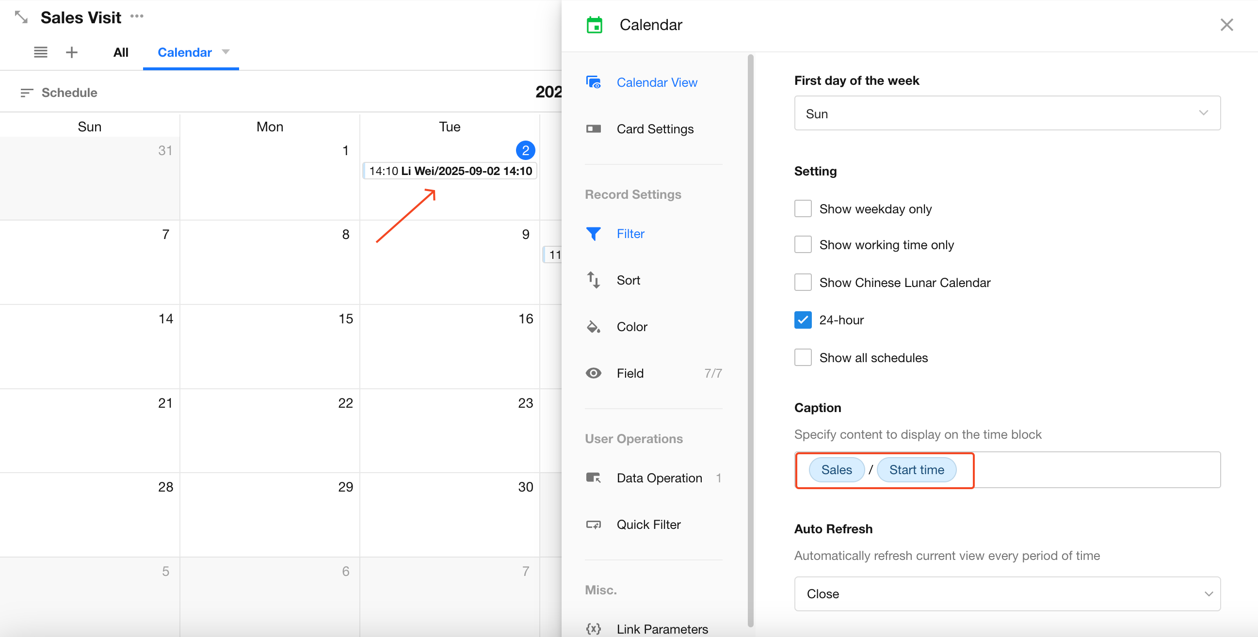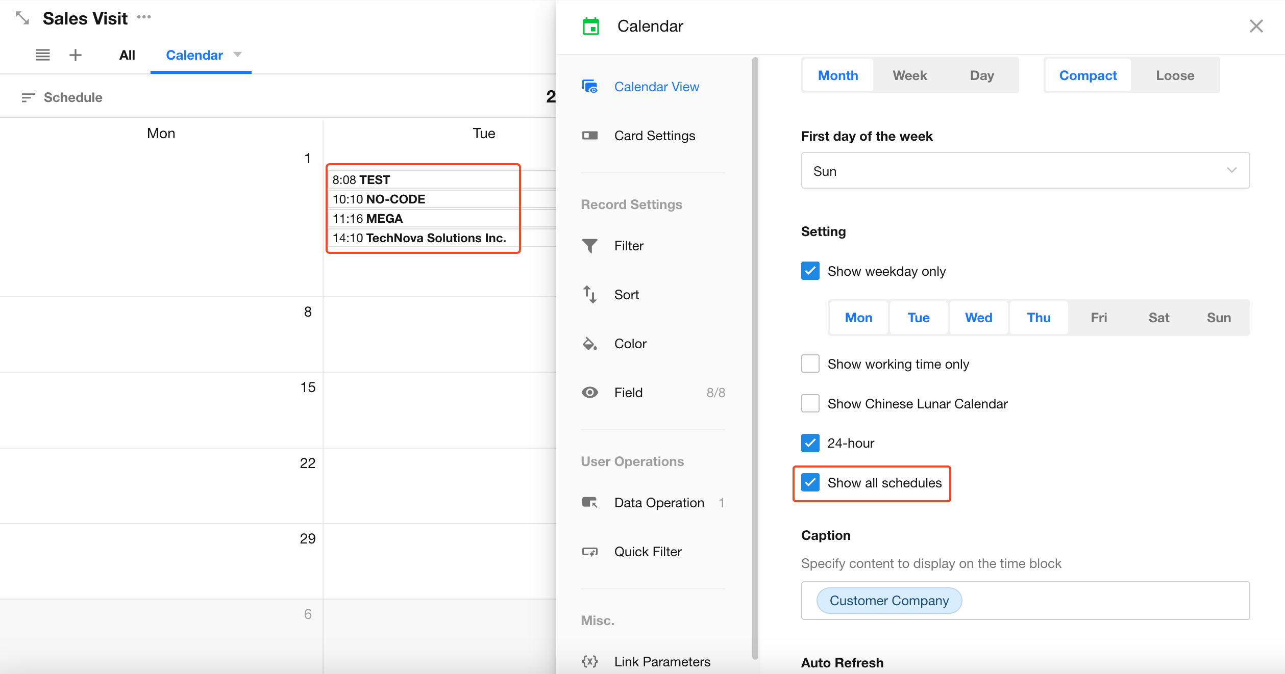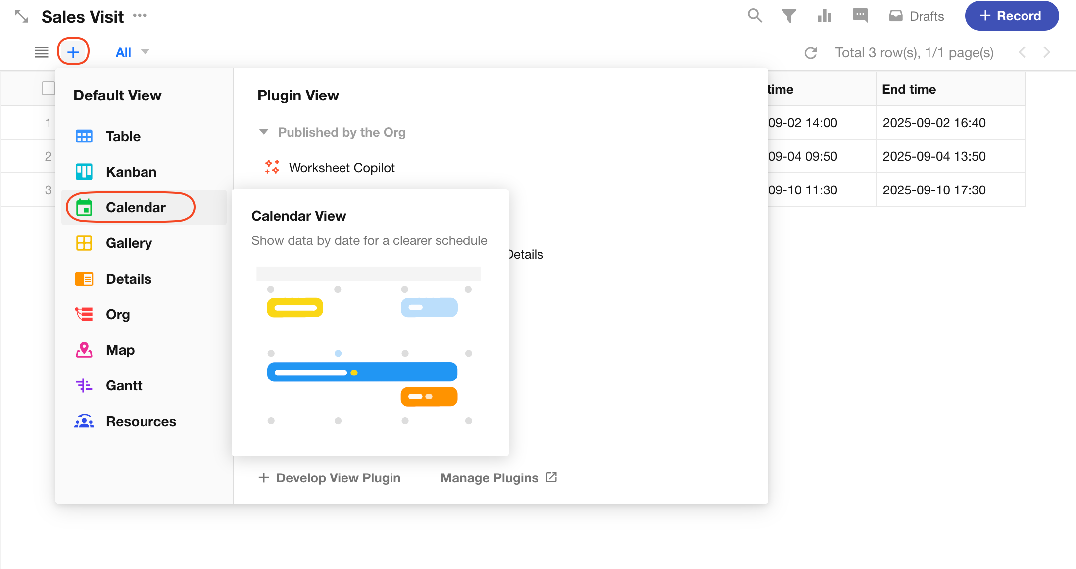 The calendar view helps users manage date-related record data more efficiently. For example, in sales visits or production schedules, you need to know: