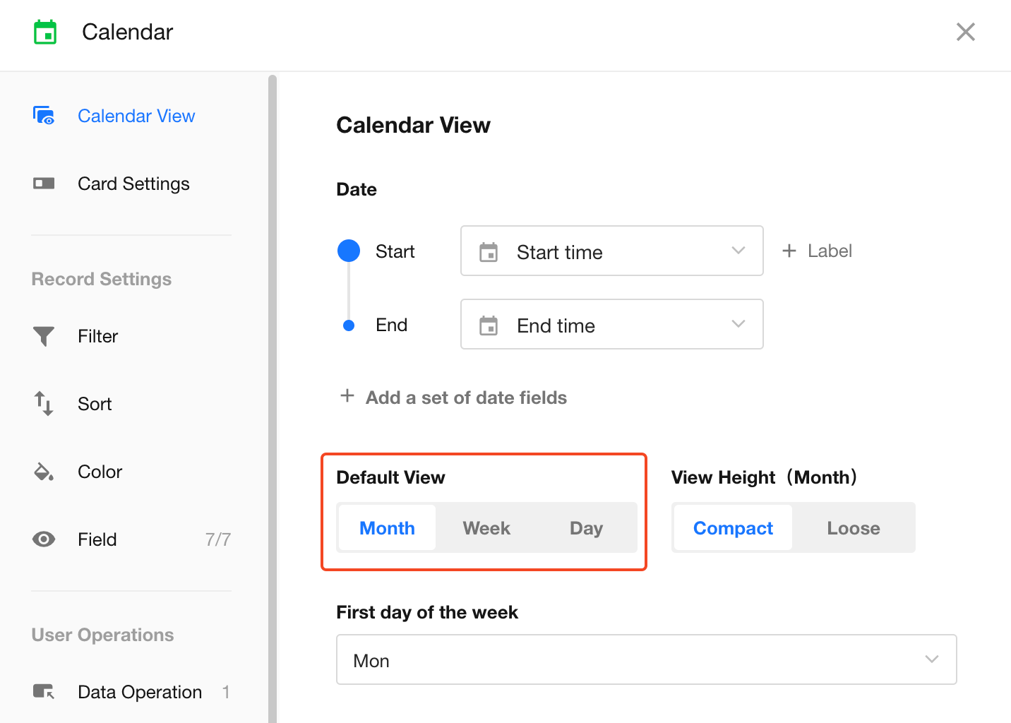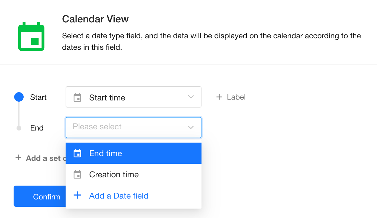 If your business involves precise planning (e.g., task start and end times), you can also set an end date field.