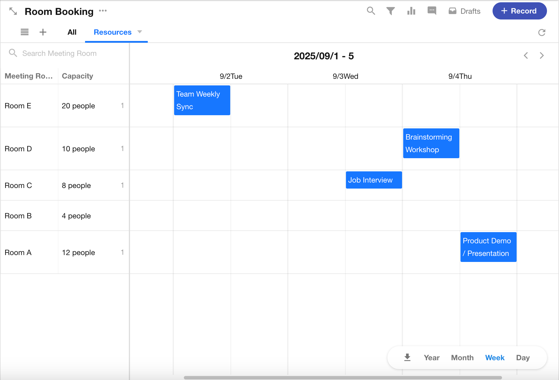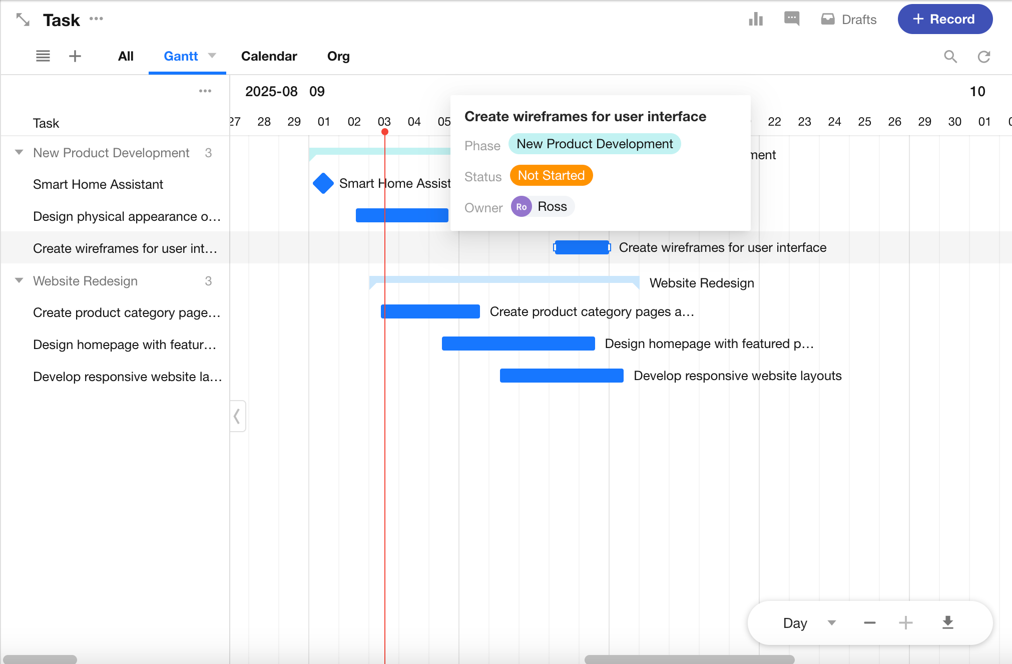 Table View, Kanban View, Details View, Org View, Gallery View, Map View, Resources View, Calendar View, Gantt View, and Plugin View.