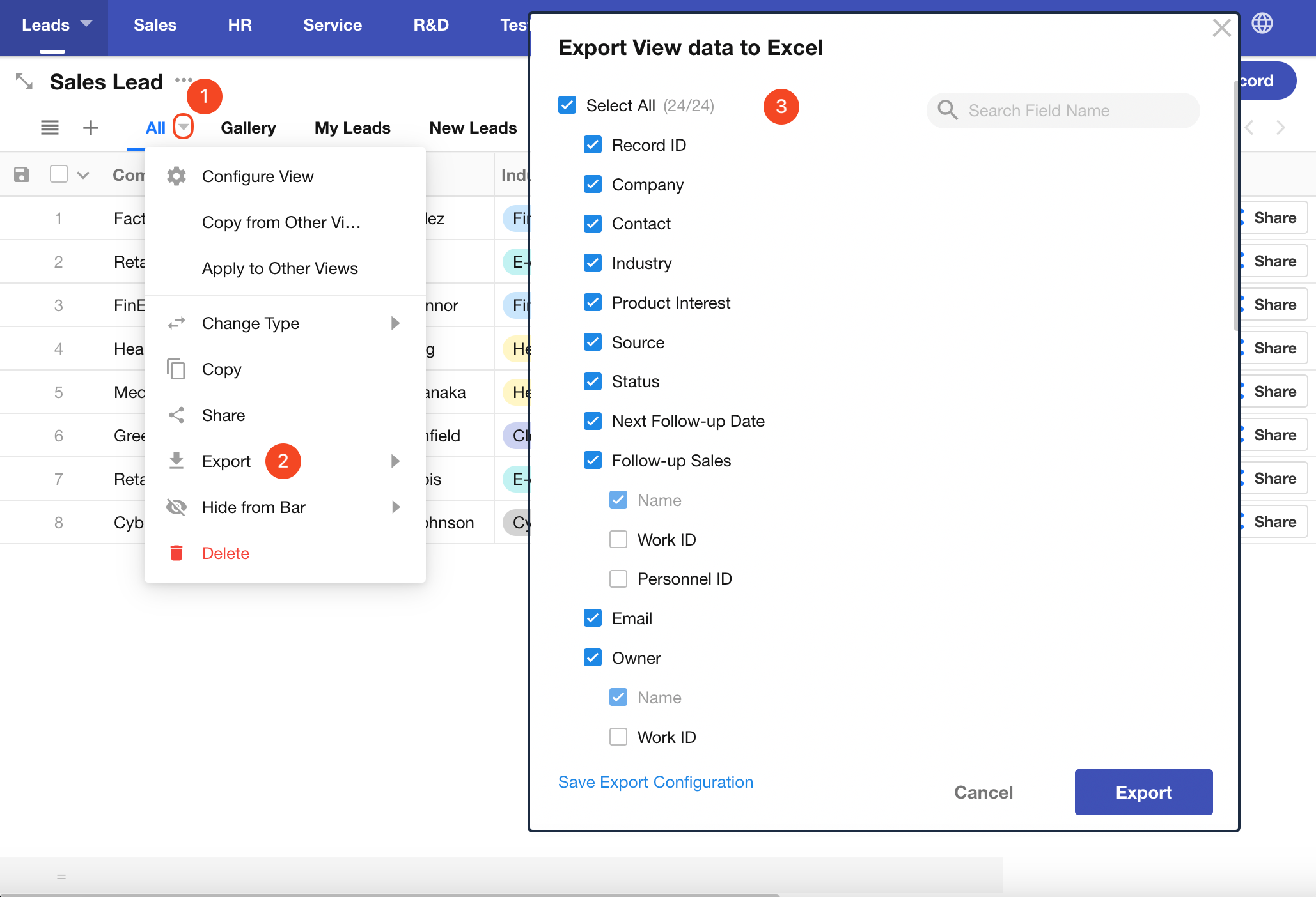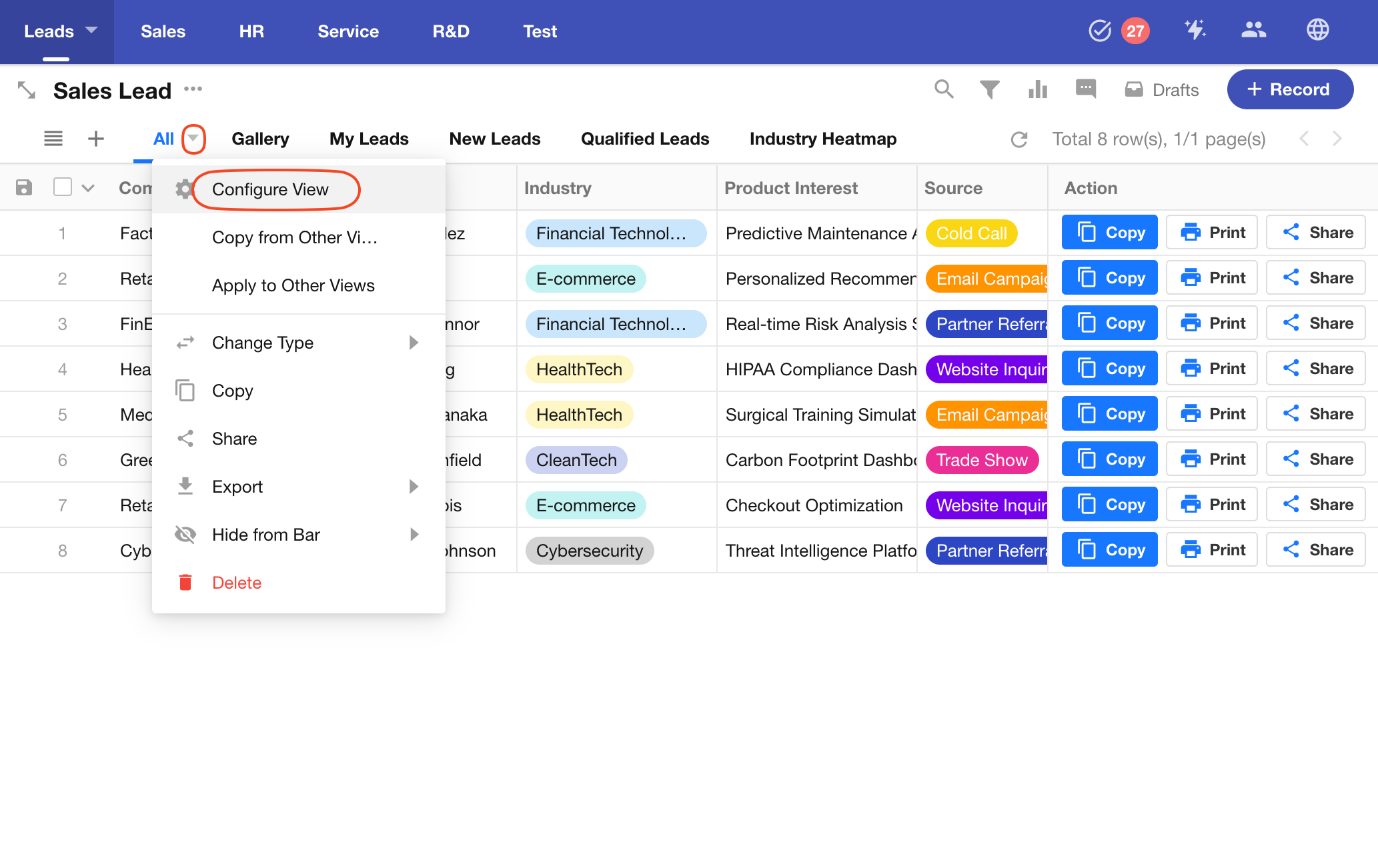Click the button on the right side of the view name and select "Configure View" to open the configuration page.
